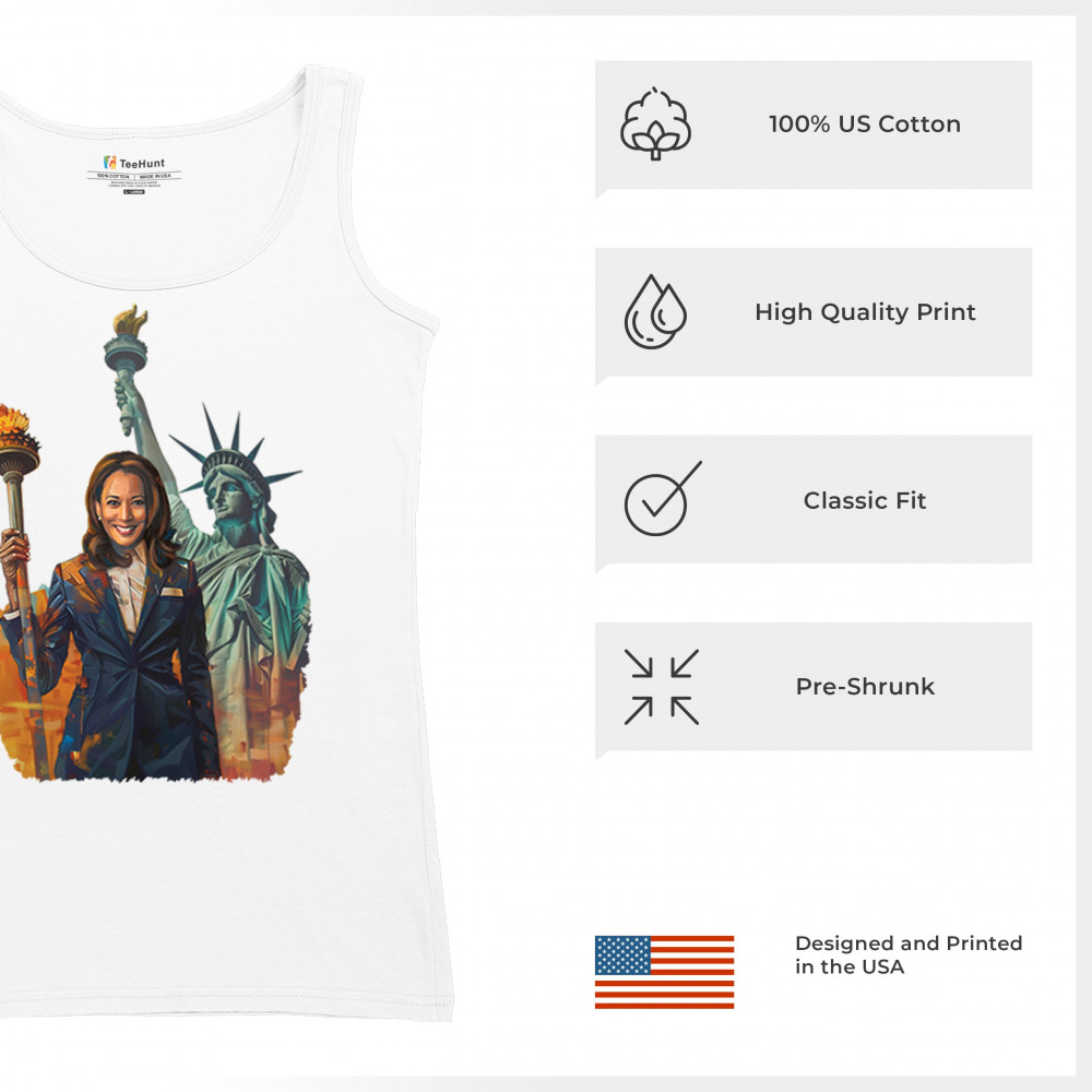 Show your support for Harris-Walz 2024 with this bold design featuring Kamala Harris and the Statue of Liberty. Stand for justice, equality, and a brighter future.