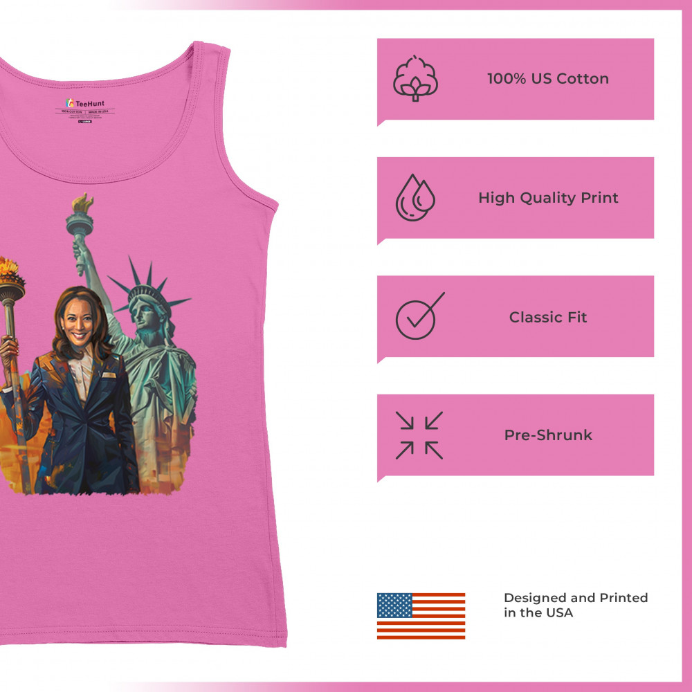 Show your support for Harris-Walz 2024 with this bold design featuring Kamala Harris and the Statue of Liberty. Stand for justice, equality, and a brighter future.