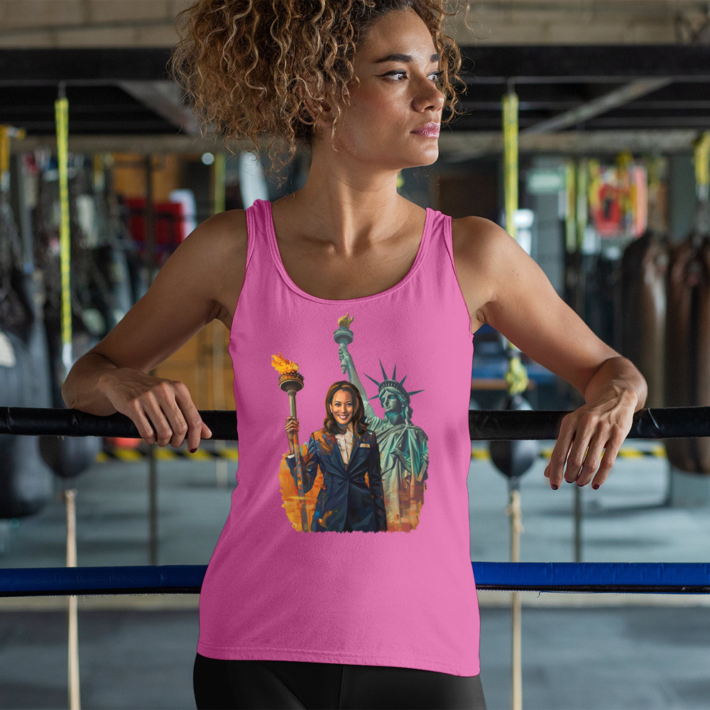This powerful design featuring Kamala Harris and the Statue of Liberty symbolizes the fight for justice, equality, and a brighter future in the Harris-Walz 2024 campaign. Perfect for rallies, events, and daily wear, this design speaks to supporters of women's rights and liberal values. Show your commitment to a better America with this striking image. Wear it with pride and be part of the movement.