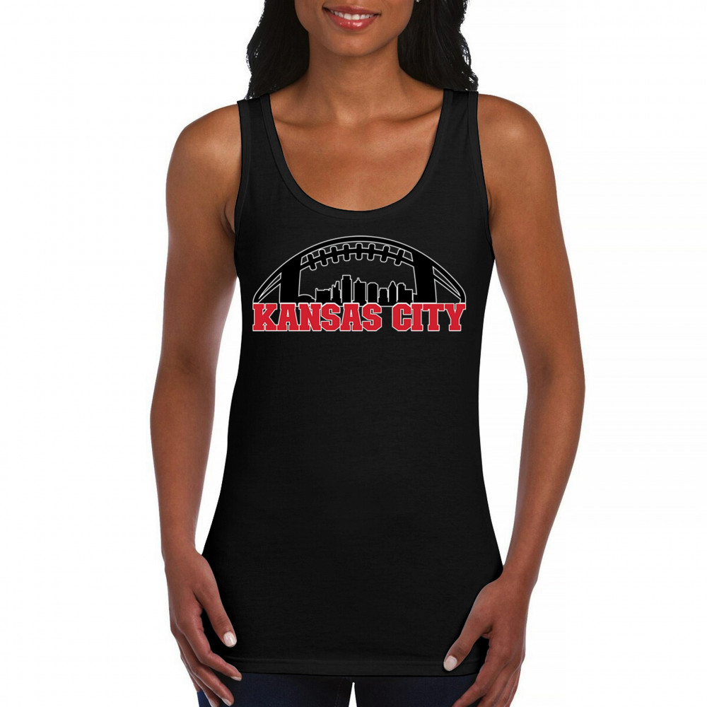 Celebrate Kansas City with a bold football design featuring the city skyline. Perfect for game days, tailgates, or proud sports fans.