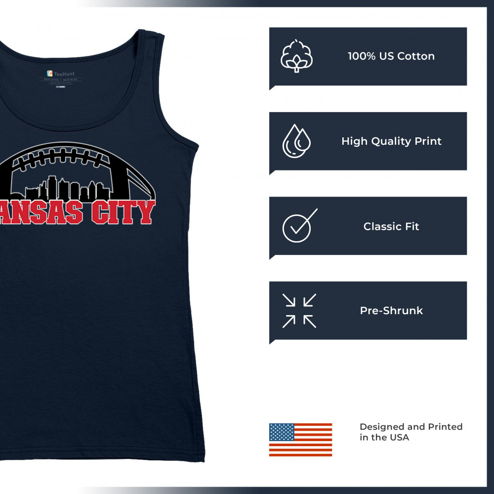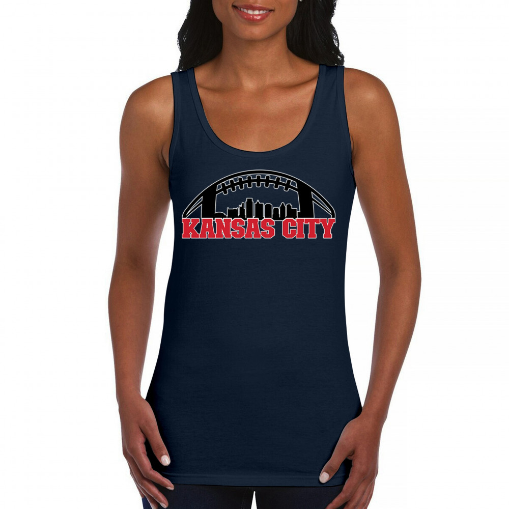 Celebrate Kansas City with a bold football design featuring the city skyline. Perfect for game days, tailgates, or proud sports fans.