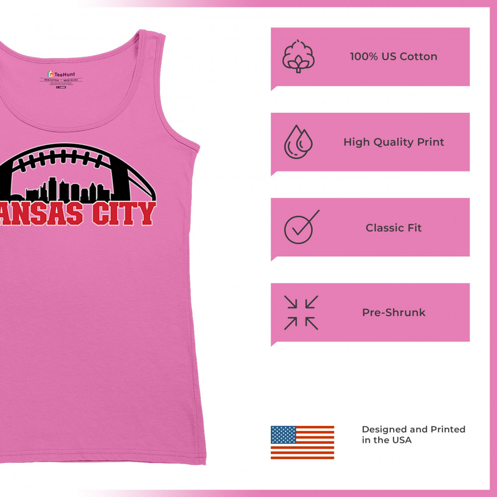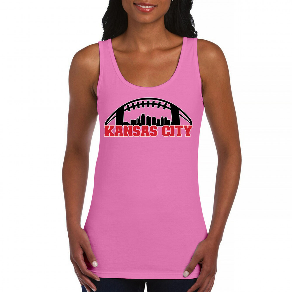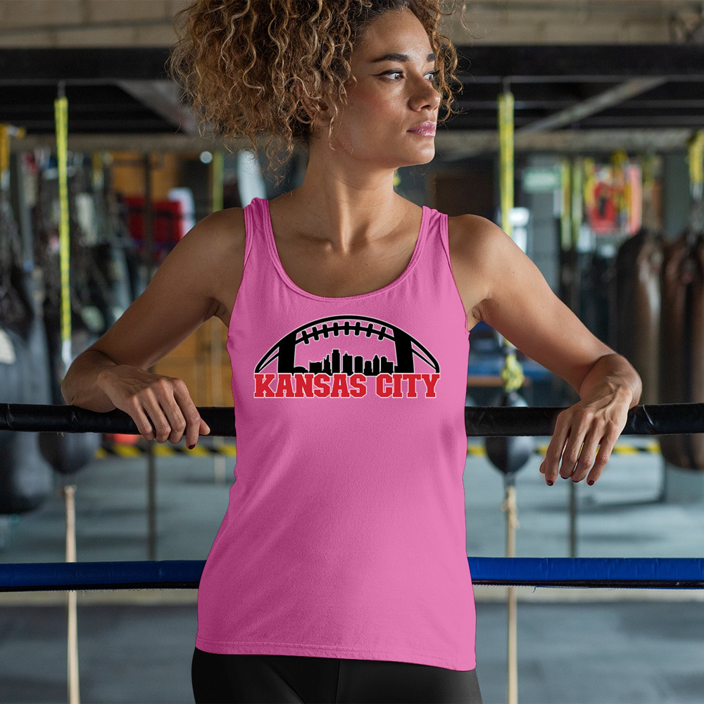 Celebrate Kansas City with a bold football design featuring the city skyline. Perfect for game days, tailgates, or proud sports fans.