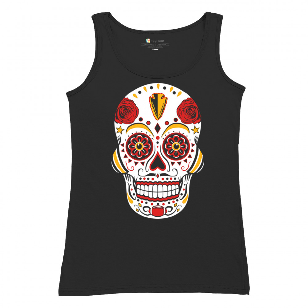 Celebrate Kansas City football with this Sugar Skull design inspired by Dia de los Muertos. Featuring Heart of America pride, red & gold tradition, and City of Fountains identity, it’s made for playoff energy, tailgate culture, and fantasy league rivalries. A bold calavera for KC fans.