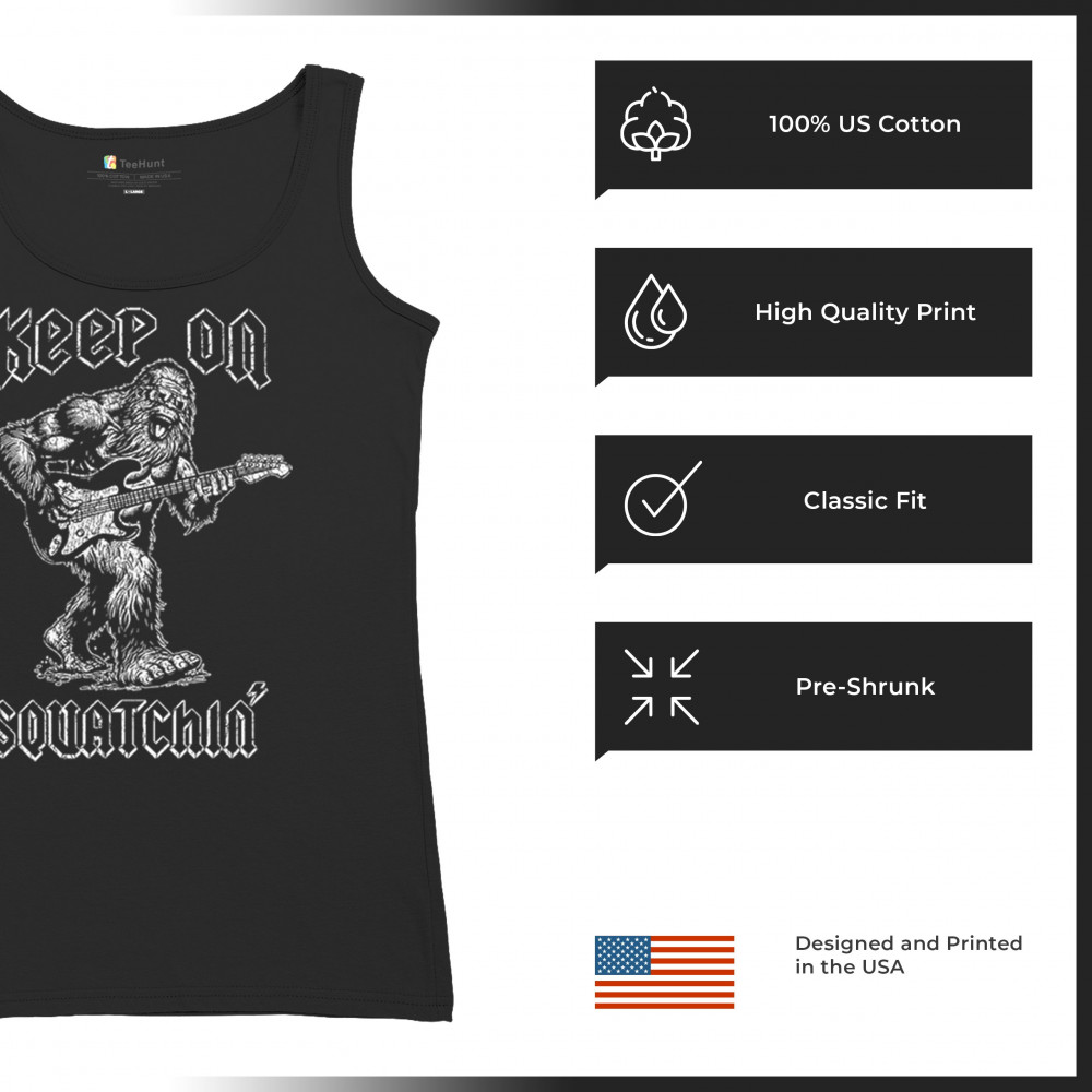 Celebrate music and adventure with the "Keep on Squatchin’" design! Bigfoot rocking a guitar makes this perfect for Sasquatch and music fans.