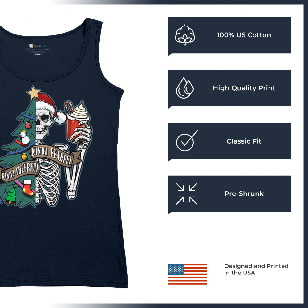 This creative Kinda Cheerful, Kinda Fearful design is a perfect blend of festive and spooky fun! Featuring a half-decorated Christmas tree and skeleton, it’s ideal for those who love combining Halloween and Christmas vibes. Great for secret Santa gifts, matching holiday pajamas, or rocking at your next ugly sweater contest. Perfect for office parties, family mornings, or simply adding some unique charm to your Feliz Navidad celebrations.