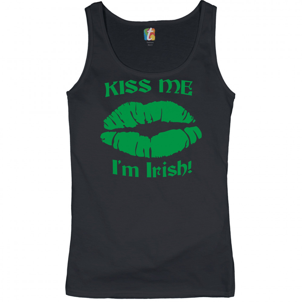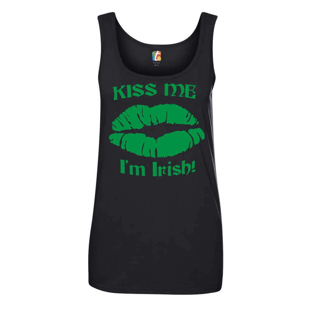 KISS ME I'M IRISH! women's tank top funny st. patrick's day shenanigans black