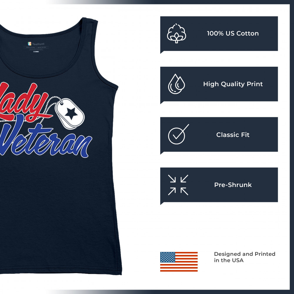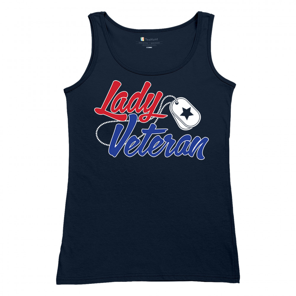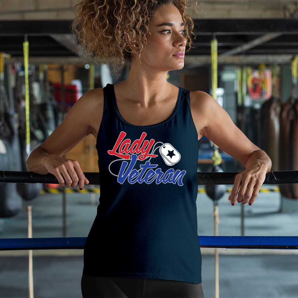 Celebrate female veterans with our "Lady Veteran" shirt. Bold red and blue design, perfect for Veterans Day and everyday wear. Honor and pride in service.