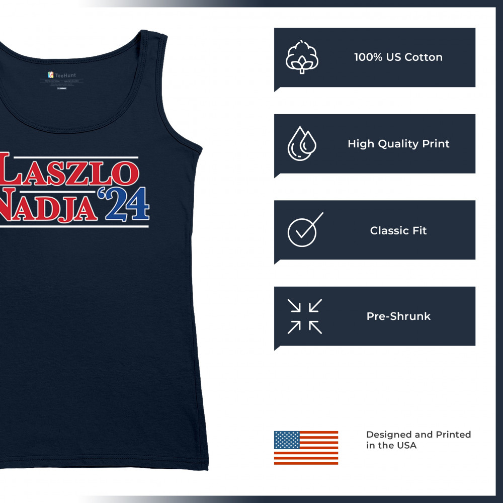 Celebrate humor and pop culture with the Laszlo and Nadja 2024 shirt. Perfect for fans of satire and quirky designs. Comfortable and durable.