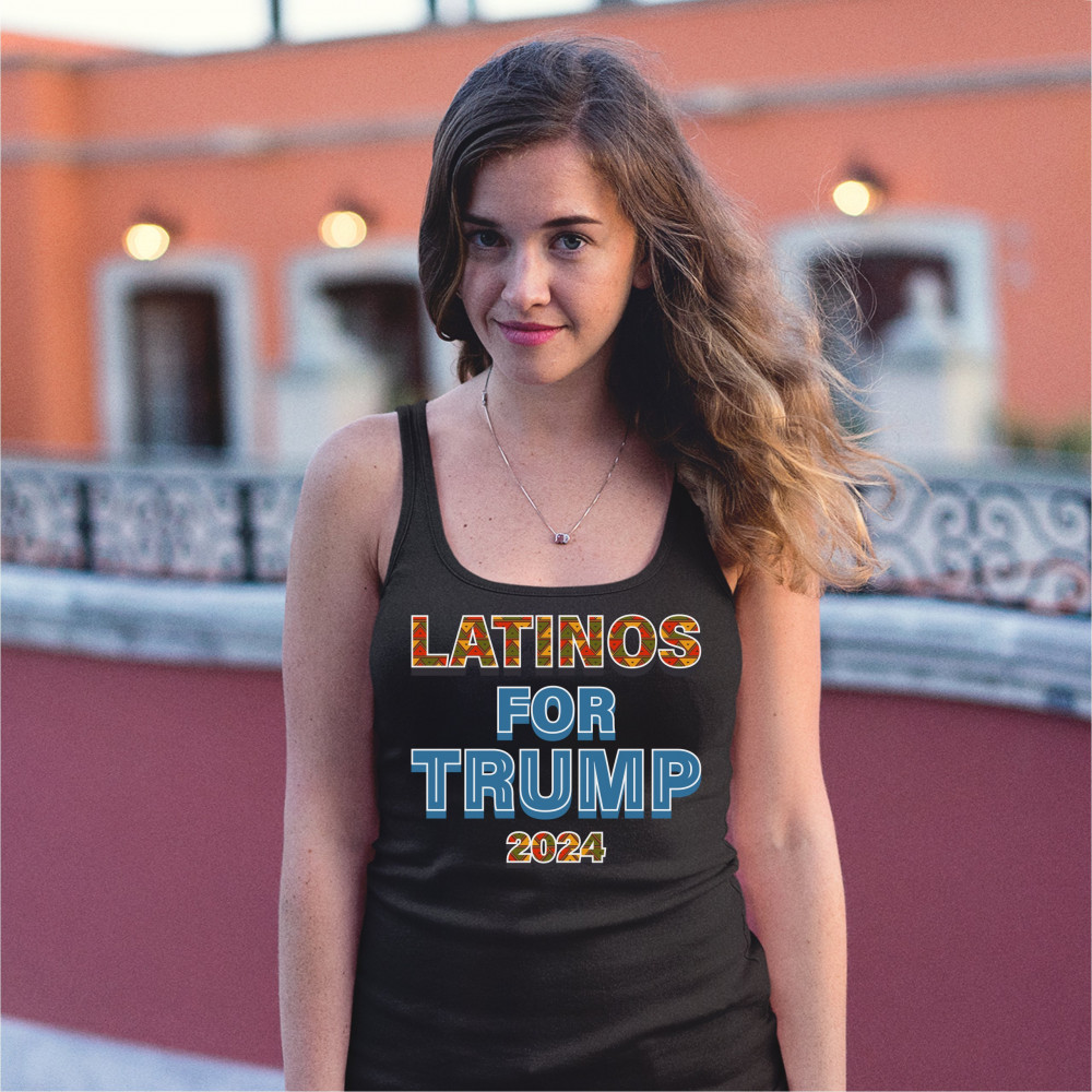 LATINOS FOR TRUMP 2024 women's tank top keep america great conservative maga black