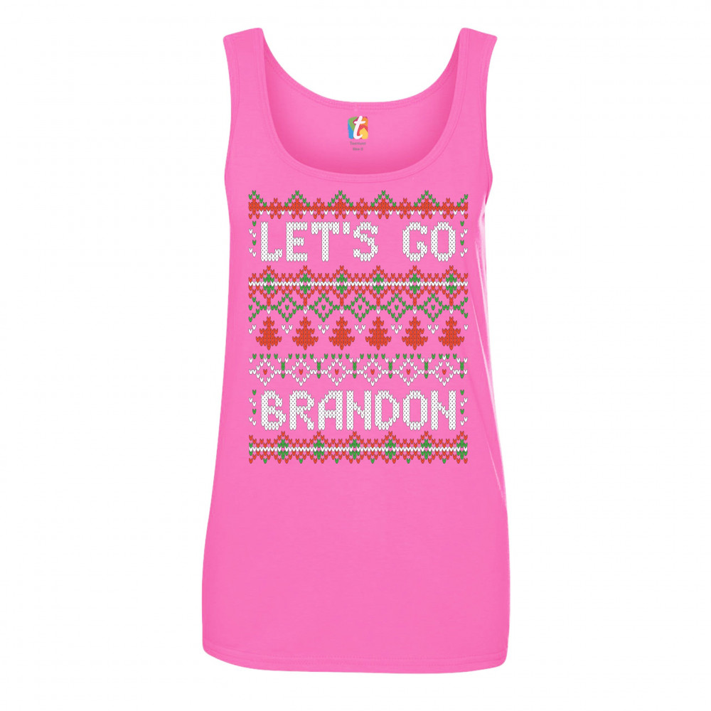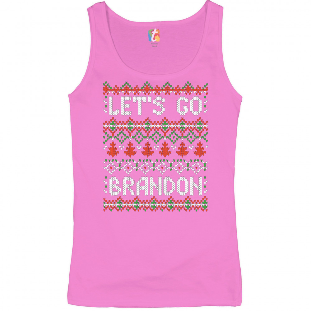 LET'S GO BRANDON women's tank top ugly sweater christmas funny anti biden pink
