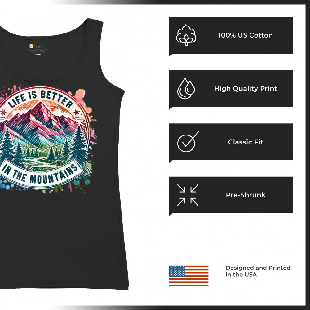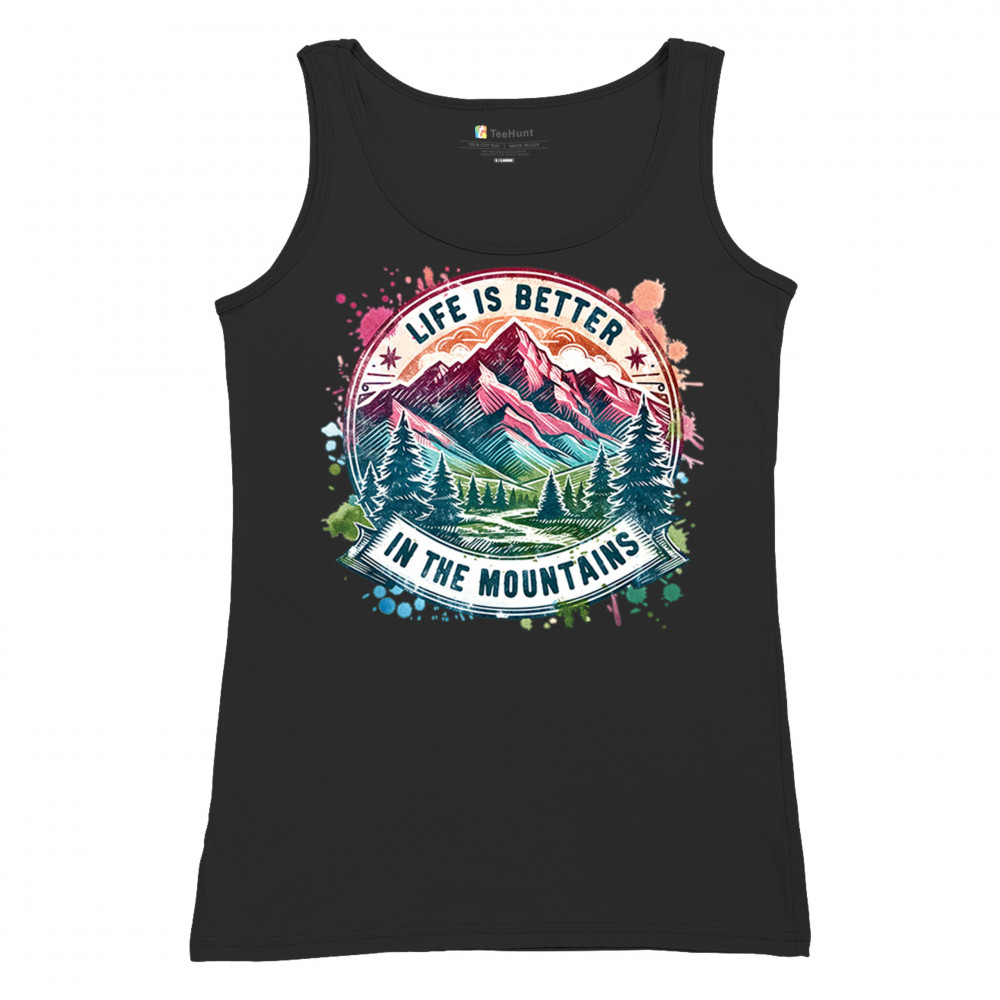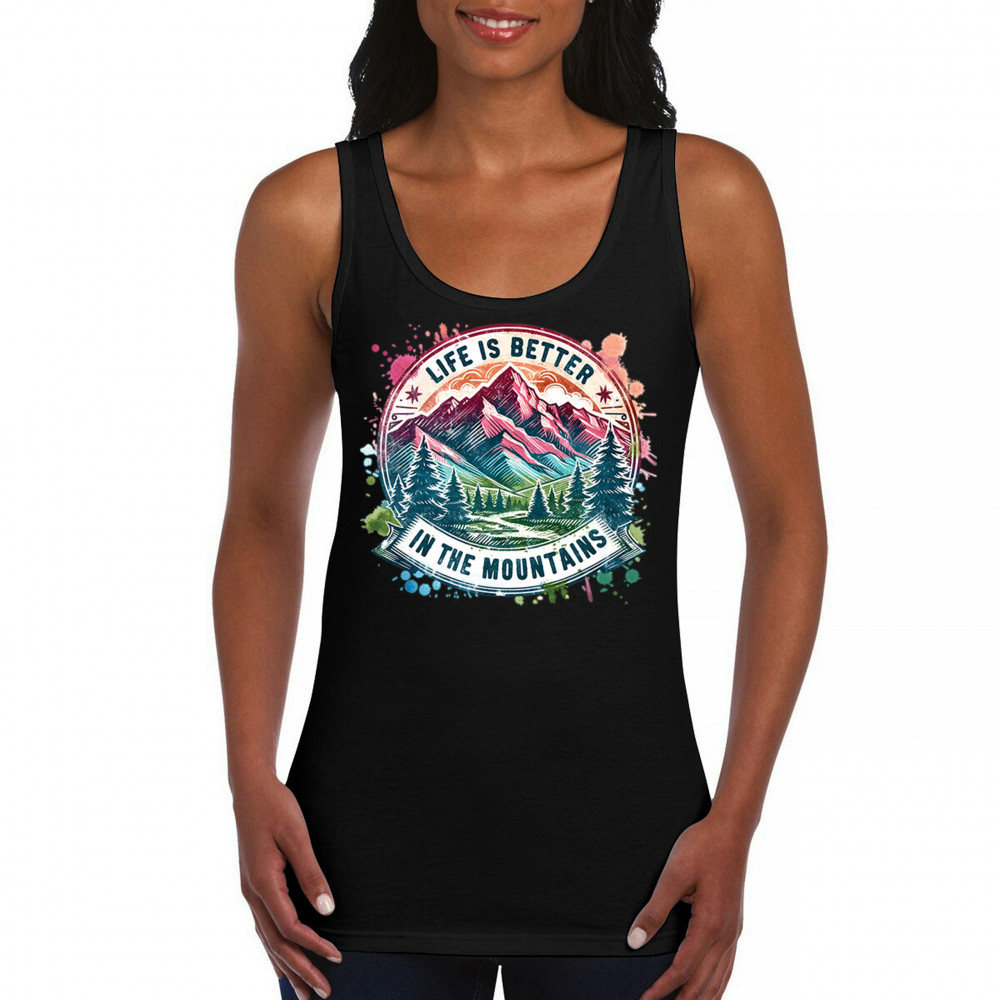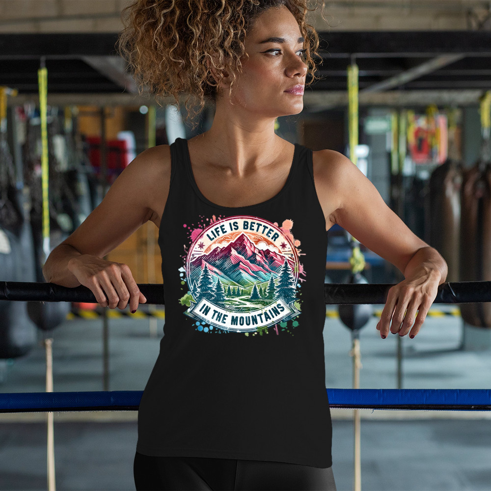 LIFE IS BETTER IN THE MOUNTAINS women's tank top trail hiking camping black