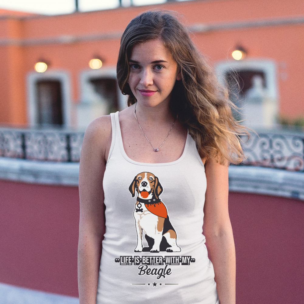 LIFE IS BETTER WITH MY BEAGLE women's tank top i love my dog best friend white