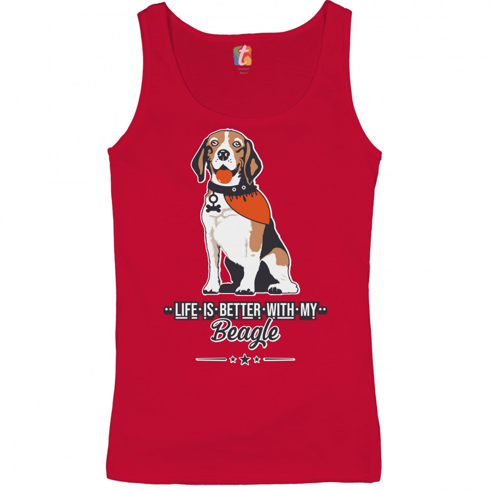 LIFE IS BETTER WITH MY BEAGLE women's tank top i love my dog best friend red