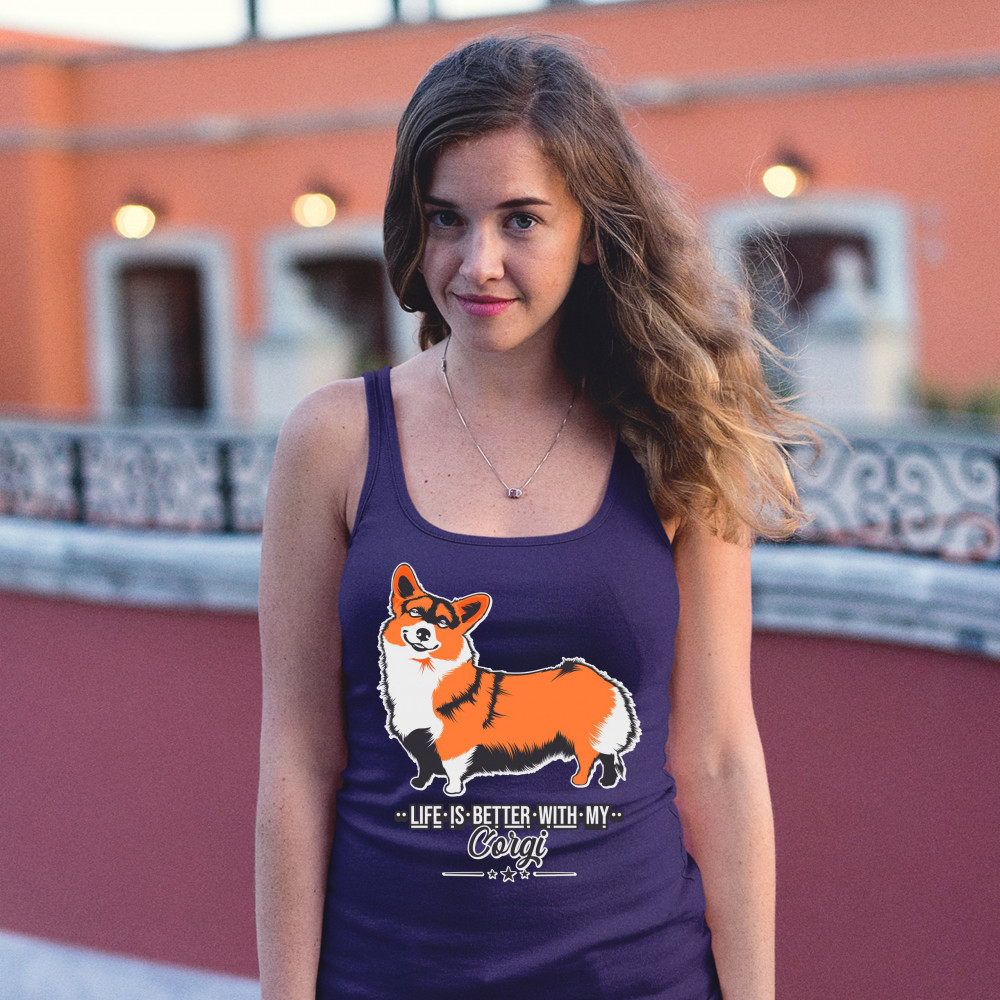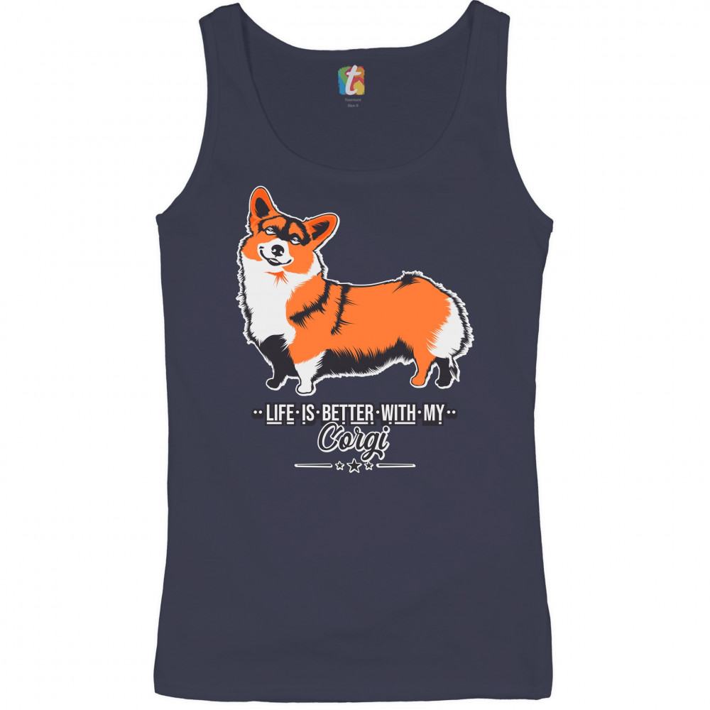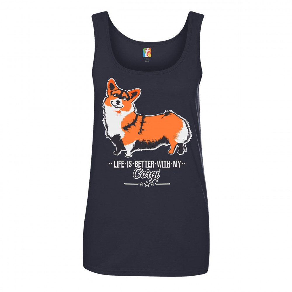 LIFE IS BETTER WITH MY CORGI women's tank top pet best friend dog lover navy blue