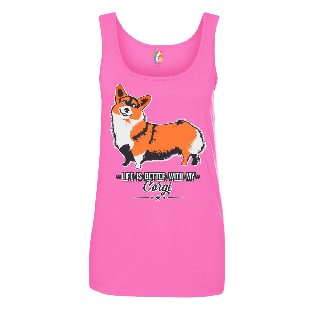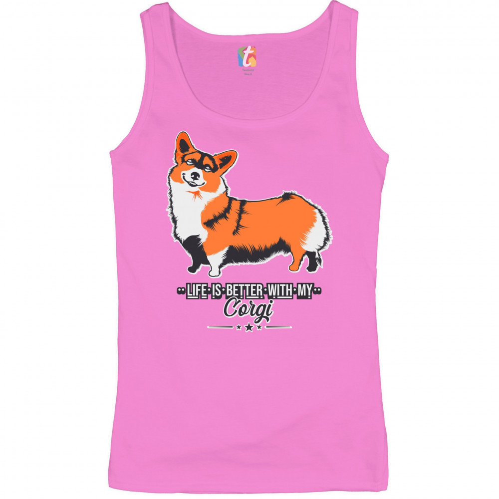 LIFE IS BETTER WITH MY CORGI women's tank top pet best friend dog lover pink