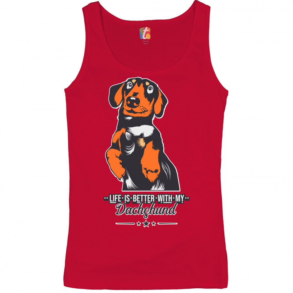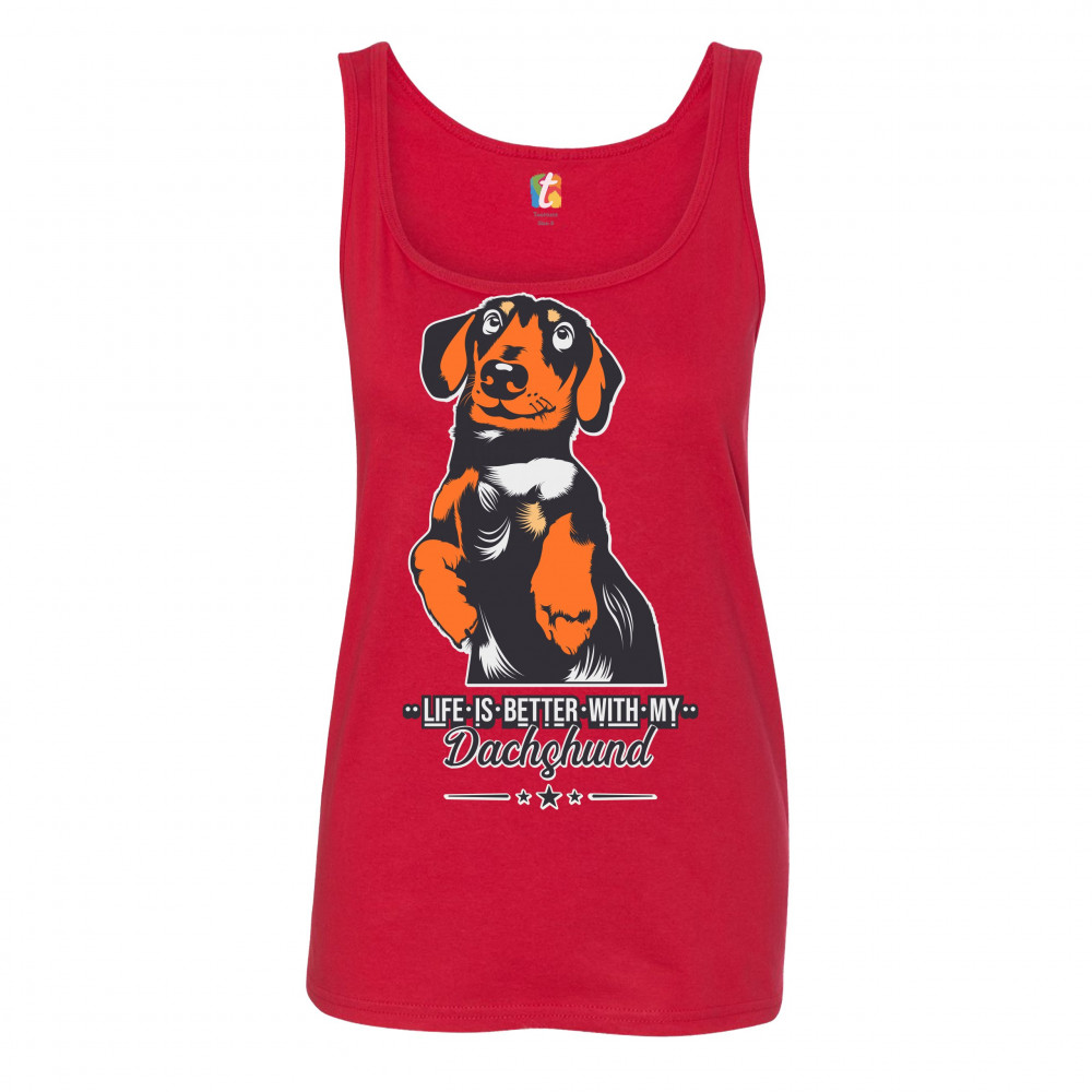 LIFE IS BETTER WITH MY DACHSUND women's tank top pet lover i love my dog red