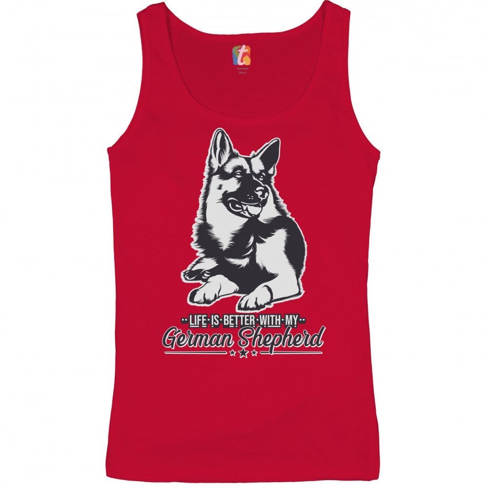 LIFE IS BETTER WITH MY GERMAN SHEPHERD women's tank top dog lover pet red