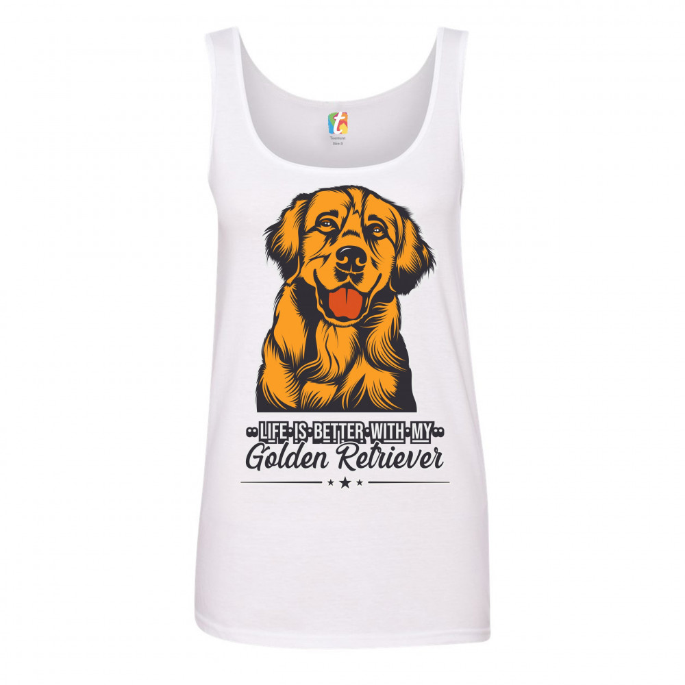 LIFE IS BETTER WITH MY GOLDEN RETRIEVER women's tank top puppy dog owner white