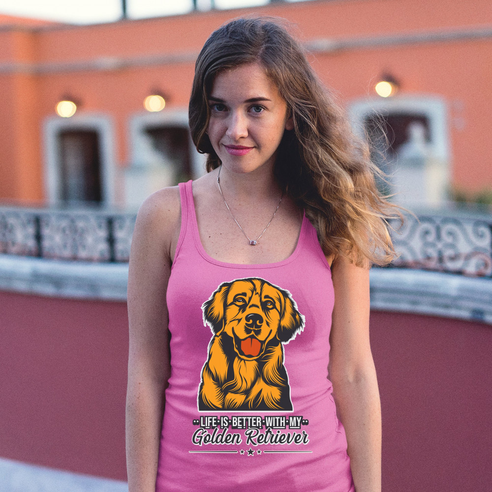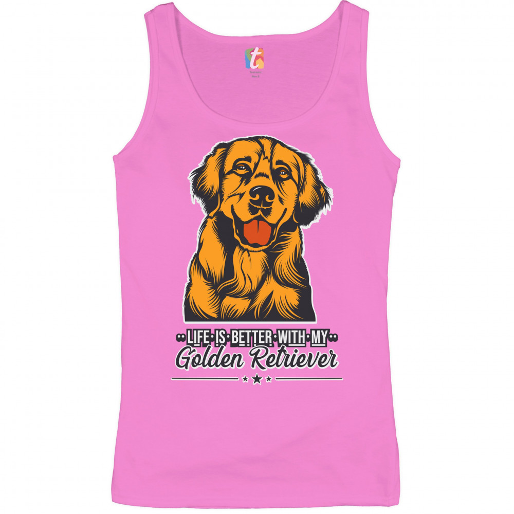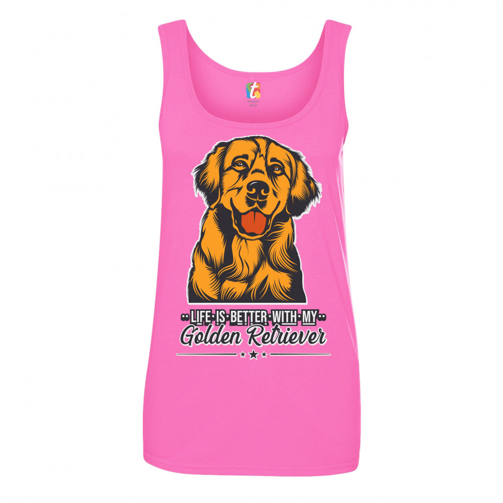 LIFE IS BETTER WITH MY GOLDEN RETRIEVER women's tank top puppy dog owner pink