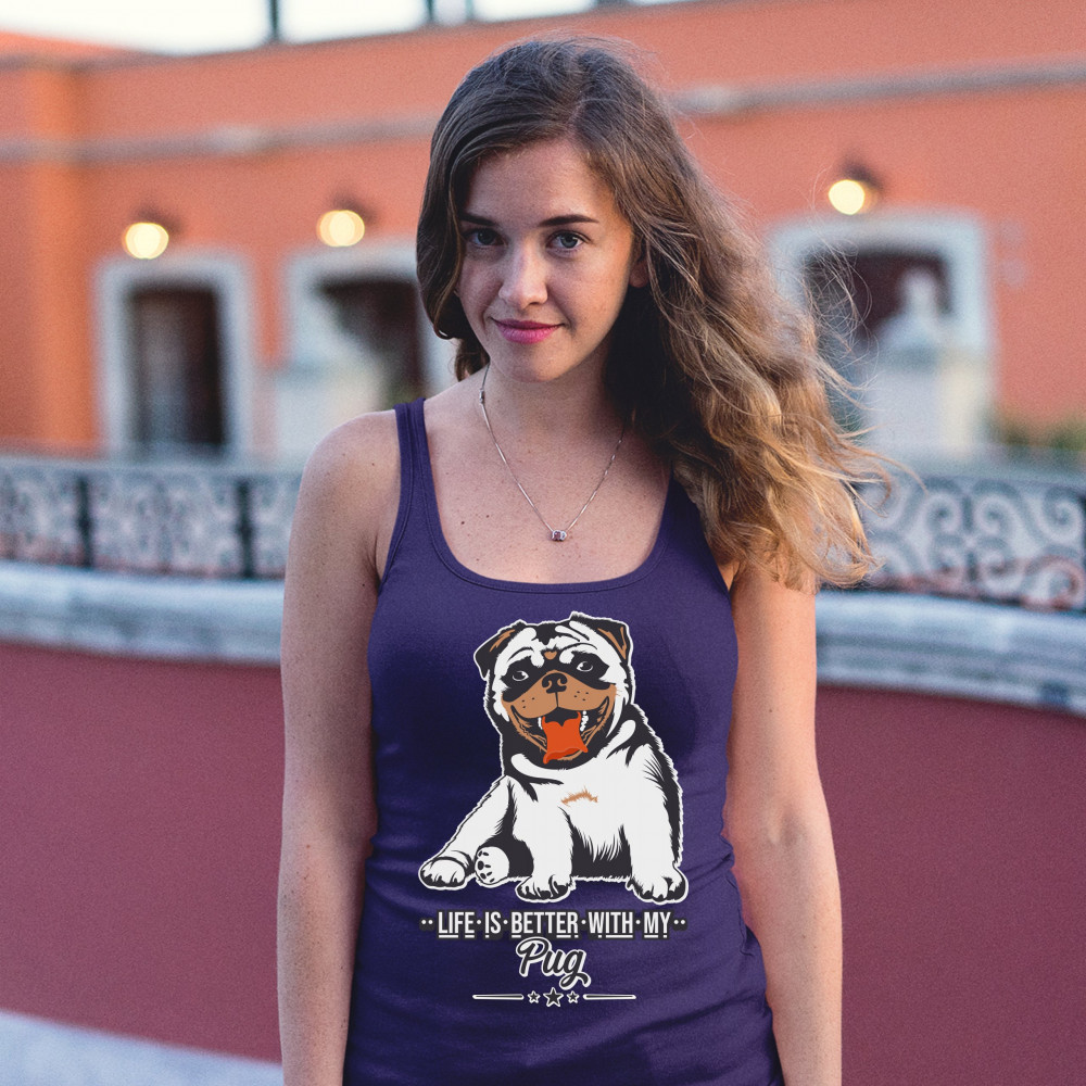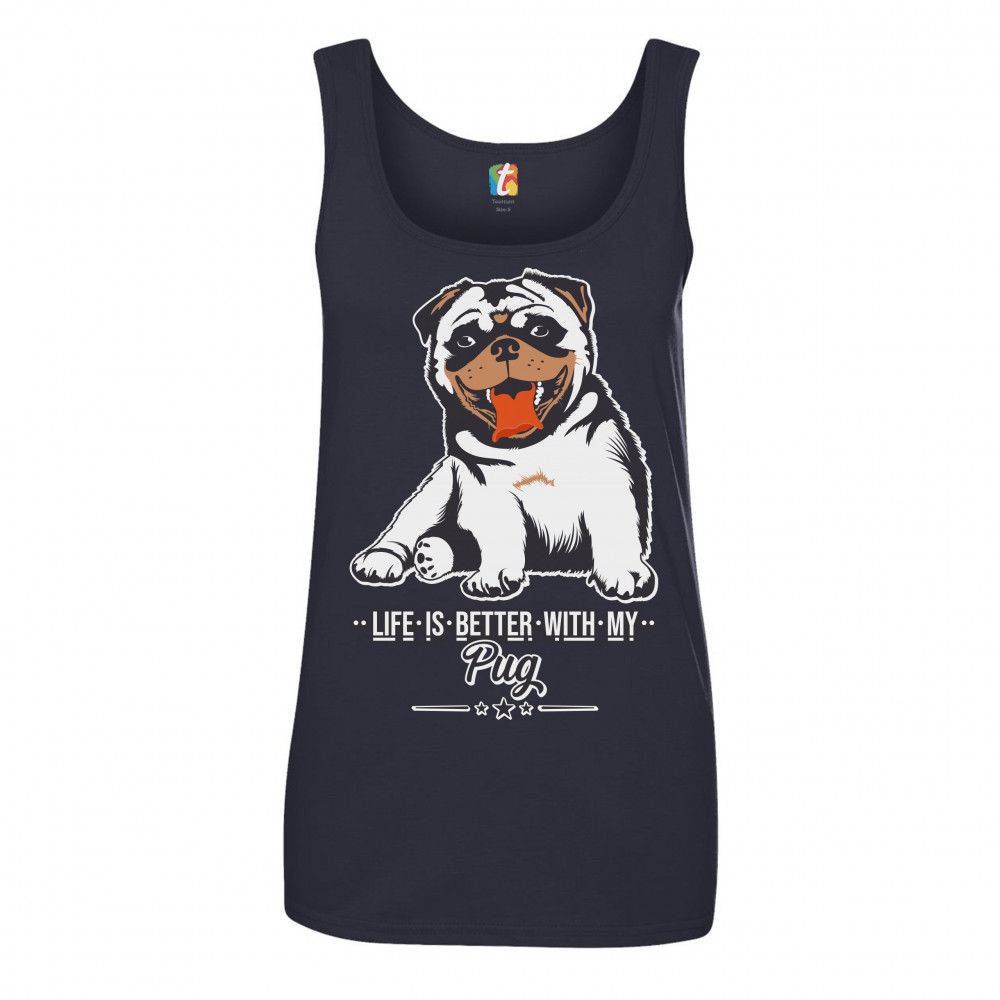LIFE IS BETTER WITH MY PUG women's tank top cute pet adorable dog breed navy blue
