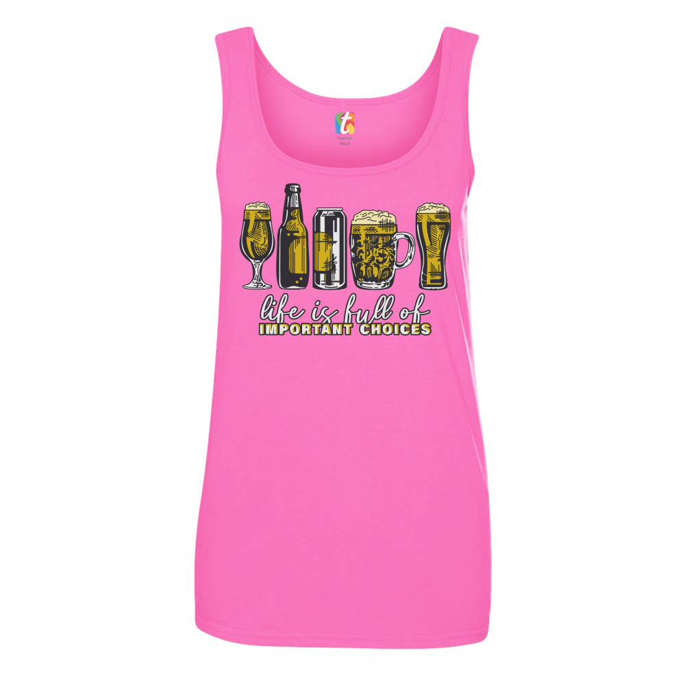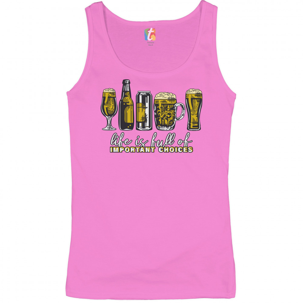 LIFE IS FULL OF IMPORTANT CHOICES women's tank top funny beer drinking ipa pink