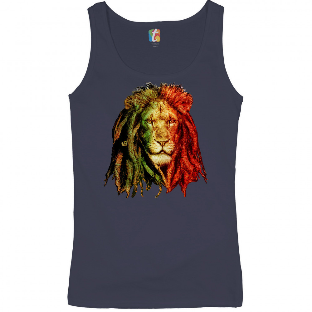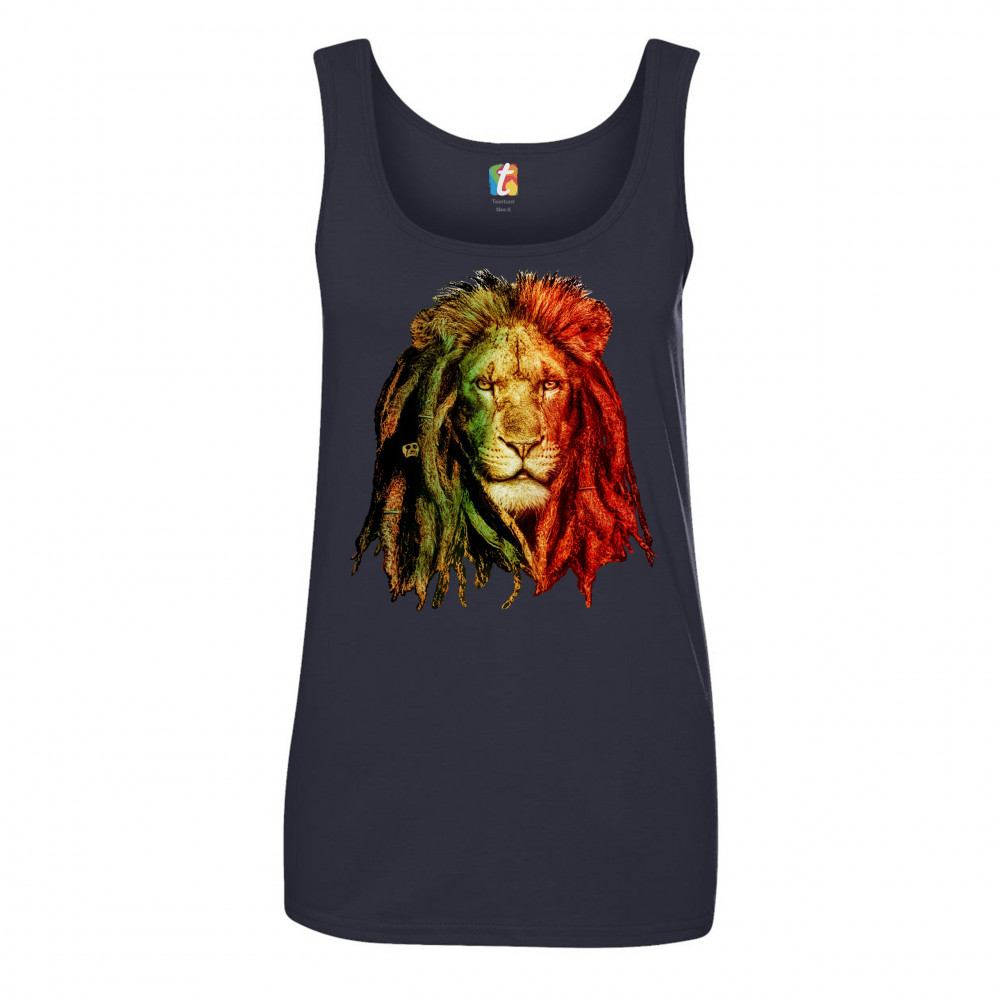 LION WITH DREADLOCKS women's tank top rastafari jah jamaica marijuana 420 navy blue