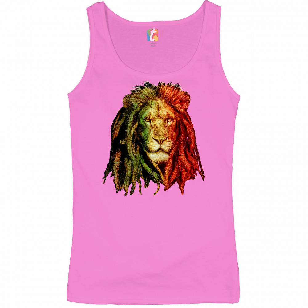 LION WITH DREADLOCKS women's tank top rastafari jah jamaica marijuana 420 pink