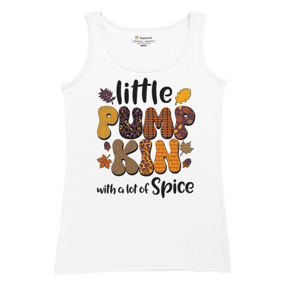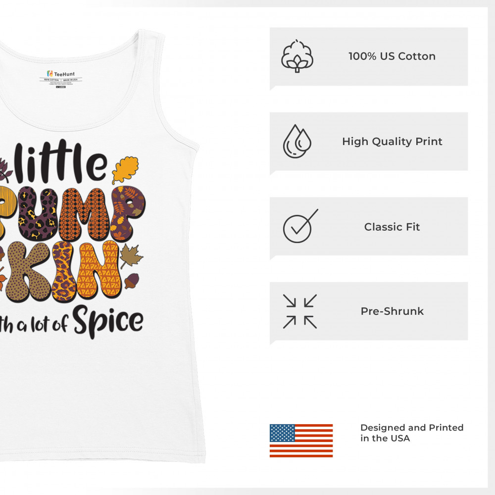 Celebrate the fall season with this playful 'Little Pumpkin with a Lot of Spice' design, perfect for festive gatherings and pumpkin patch visits.