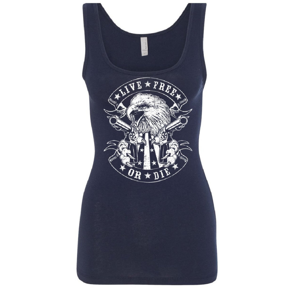 LIVE FREE OR DIE women's tank top eagle biker 2nd amendment american flag top navy blue