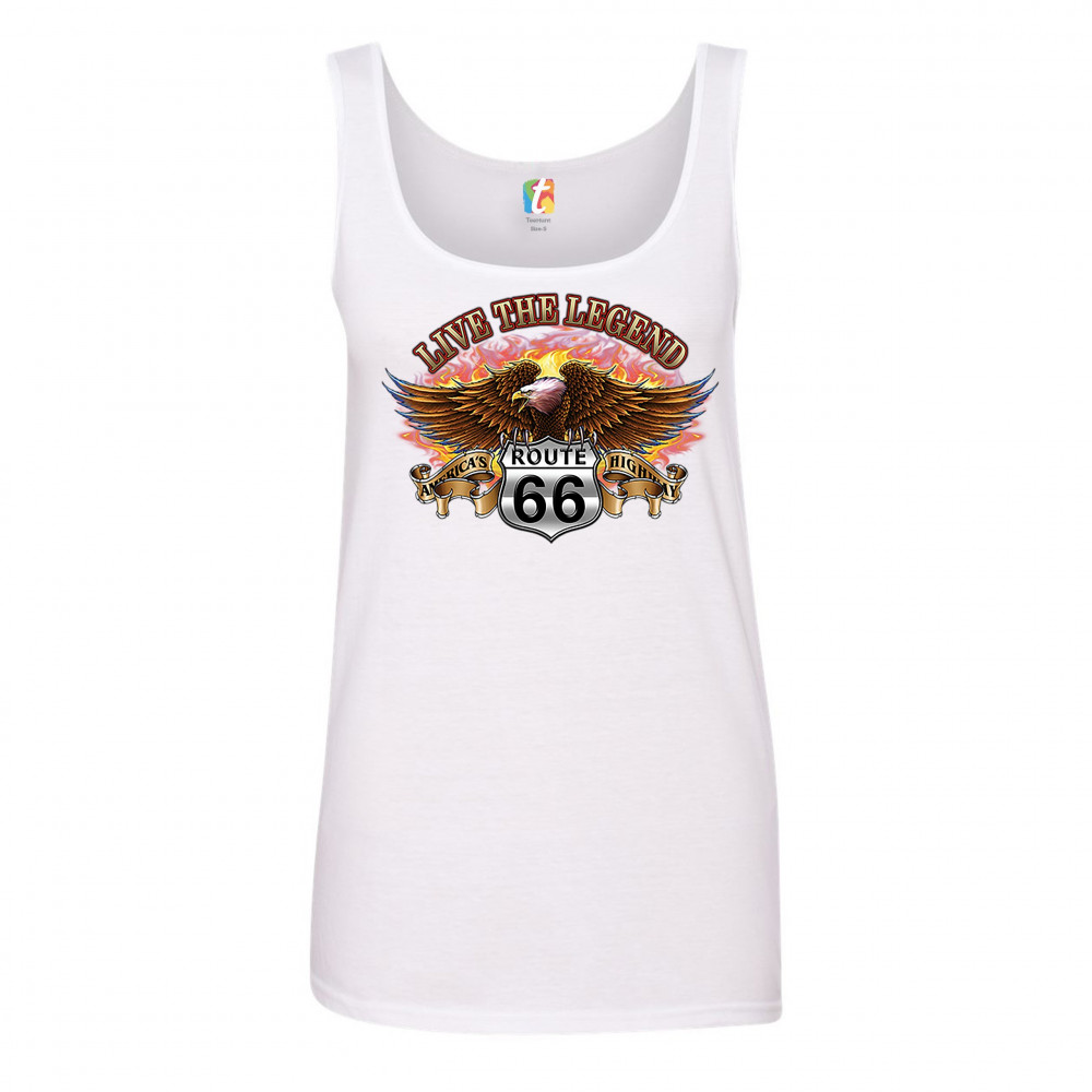 LIVE THE LEGEND AMERICA'S HIGHWAYS women's tank top route 66 bald eagle white