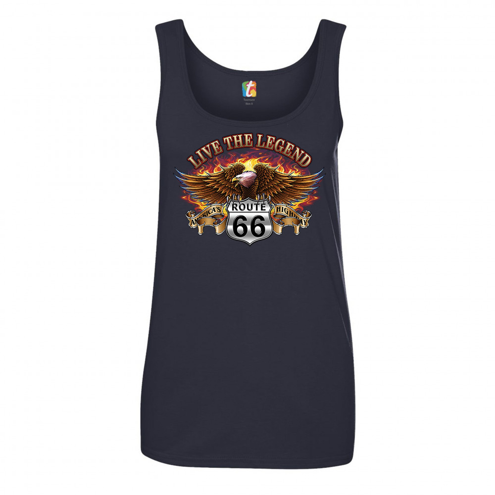 LIVE THE LEGEND AMERICA'S HIGHWAYS women's tank top route 66 bald eagle navy blue