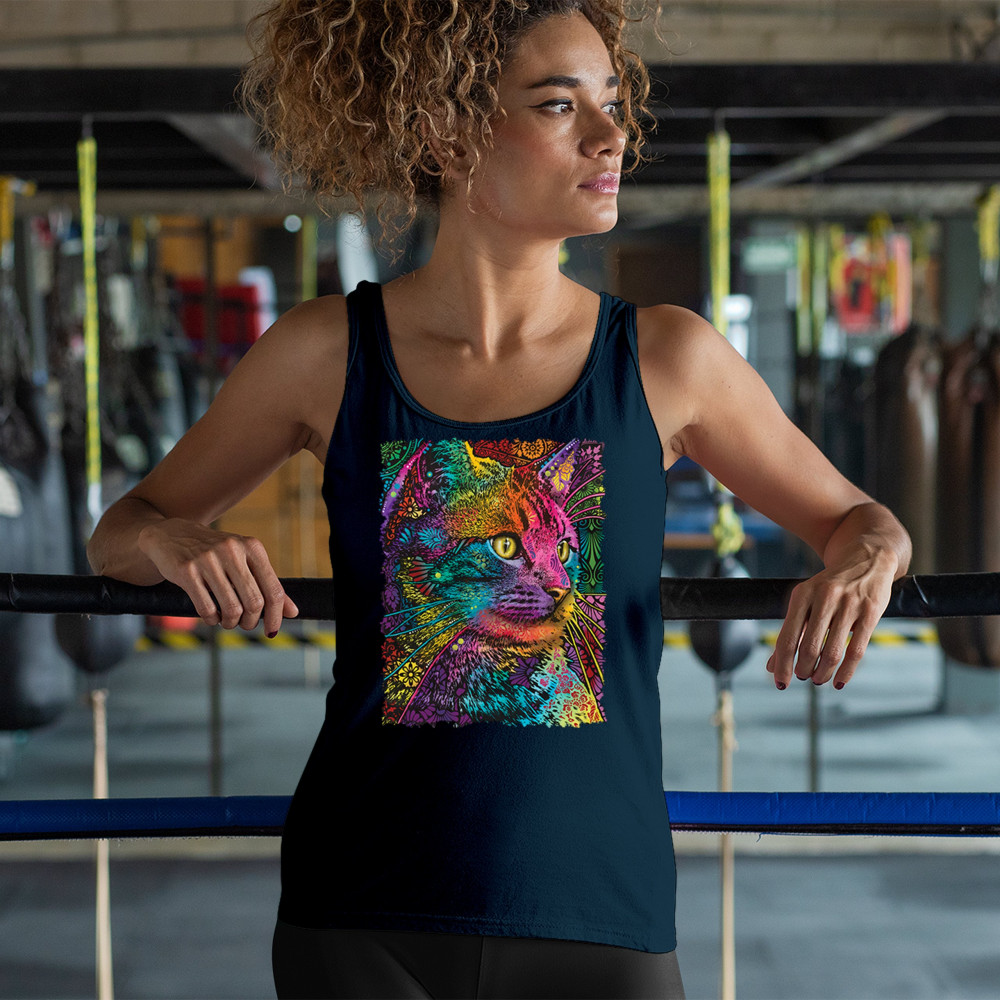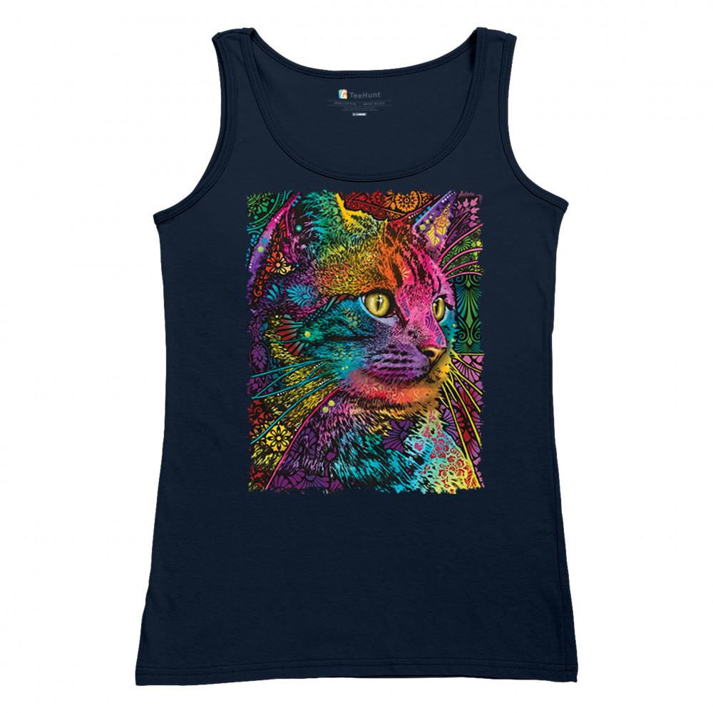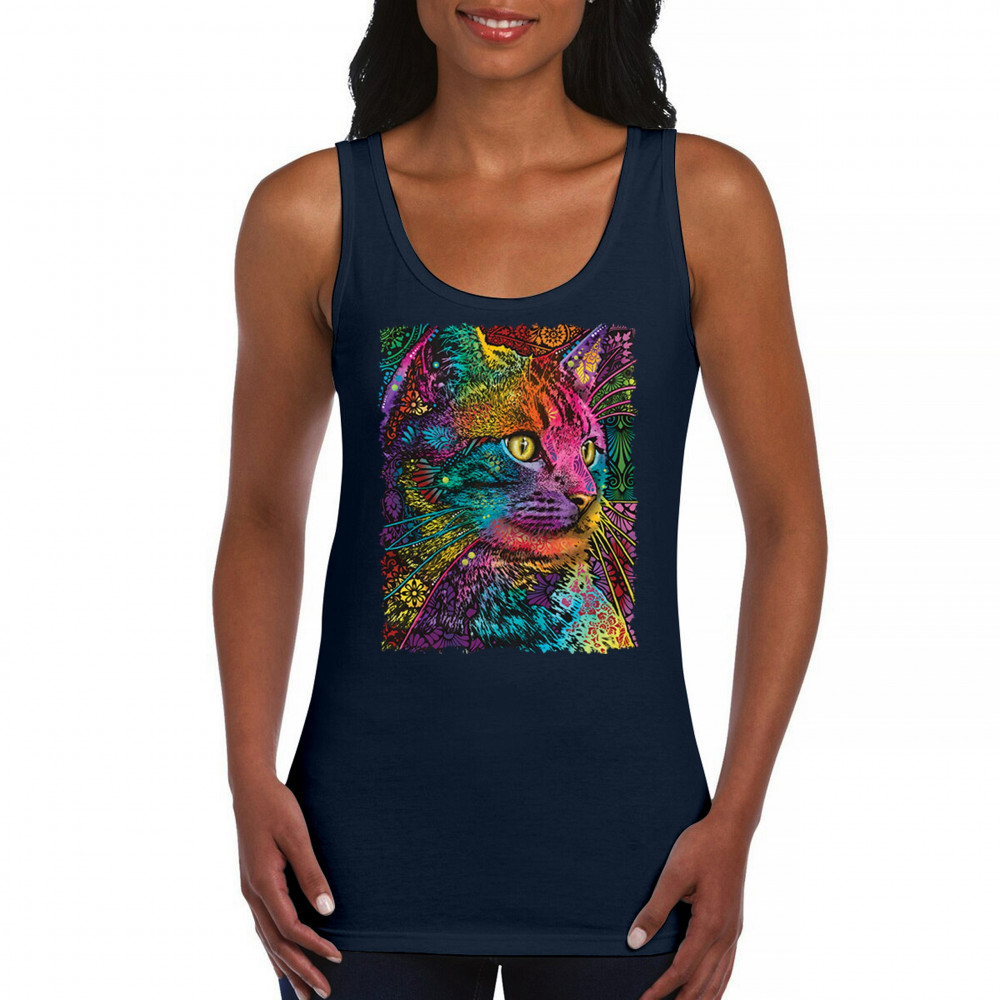 LOVABLE CAT women's tank top dean russo colorful felis catus pattern art navy blue