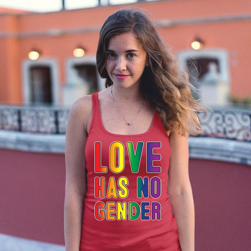 LOVE HAS NO GENDER women's tank top lesbian gay bi transgender queer ally red