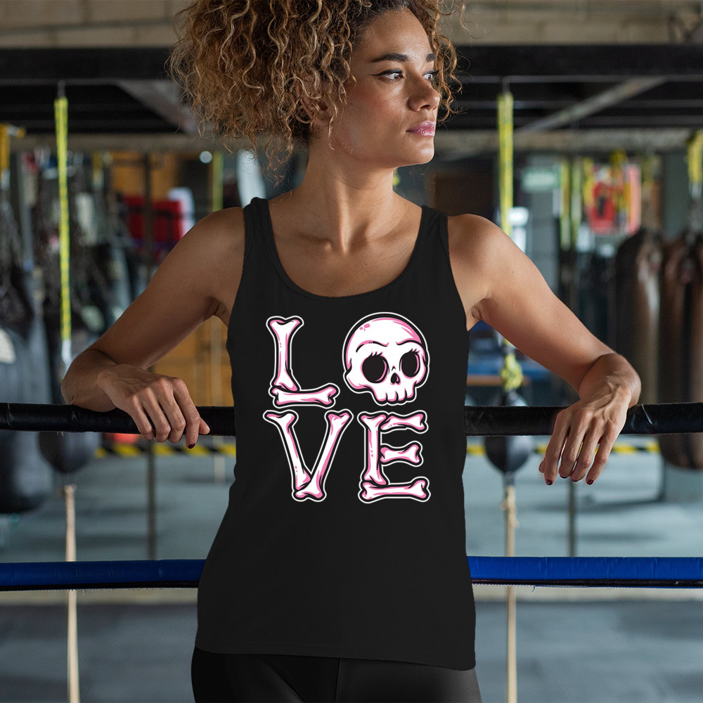Celebrate spooky romance with this playful “LOVE†design made from pink bones and a cartoon skull. Perfect for goth girls, punk couples, and alt fashion fans, this design mixes Halloween style with sweet sentiment. Great for festivals, romantic gifts, or edgy everyday wear that breaks the rules of traditional love.