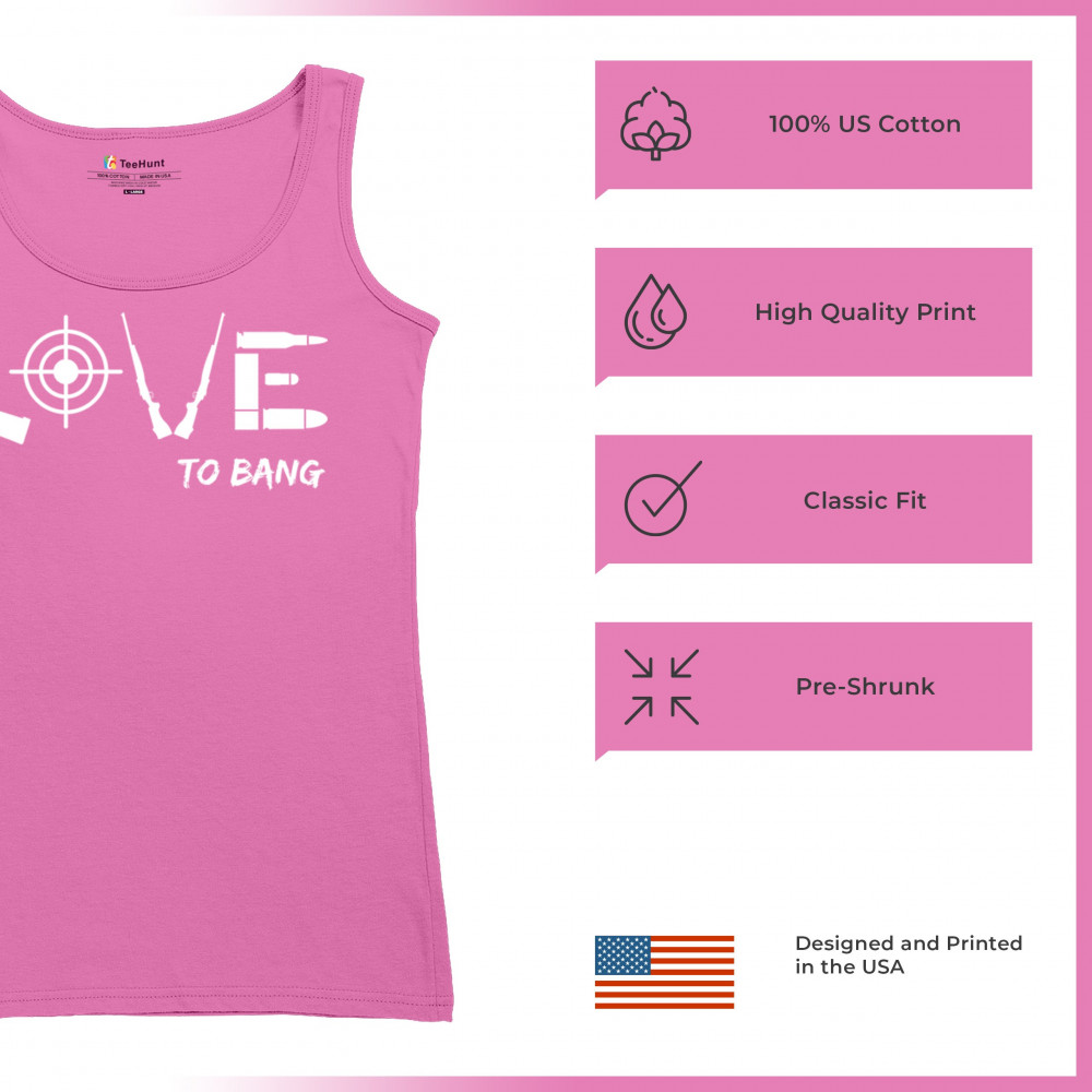 Embrace your right to bear arms with our bold "LOVE To Bang" T-shirt. Whether you're a service veteran, a militia member, or a staunch advocate for the 4th amendment, this shirt's clever design ensures you stand out. Celebrate your love for freedom—and your sense of humor—with apparel that hits the mark.