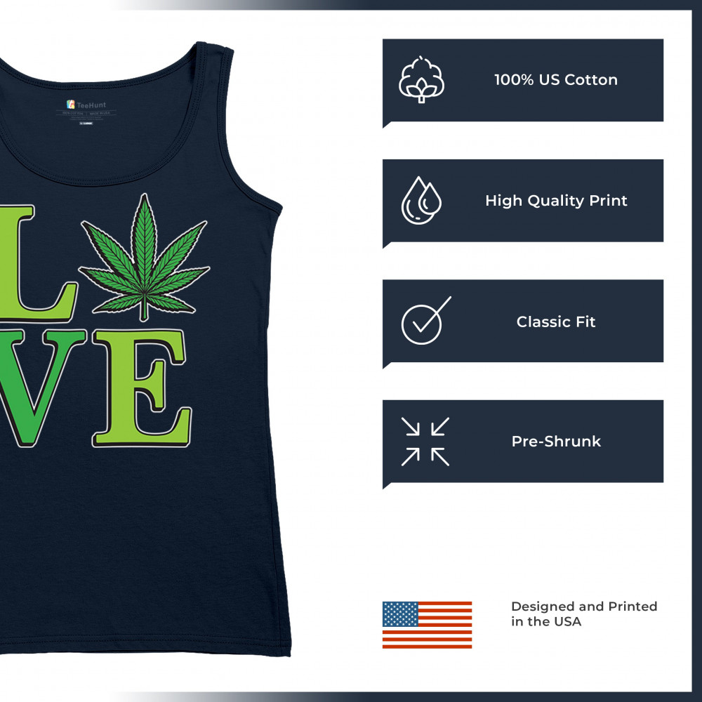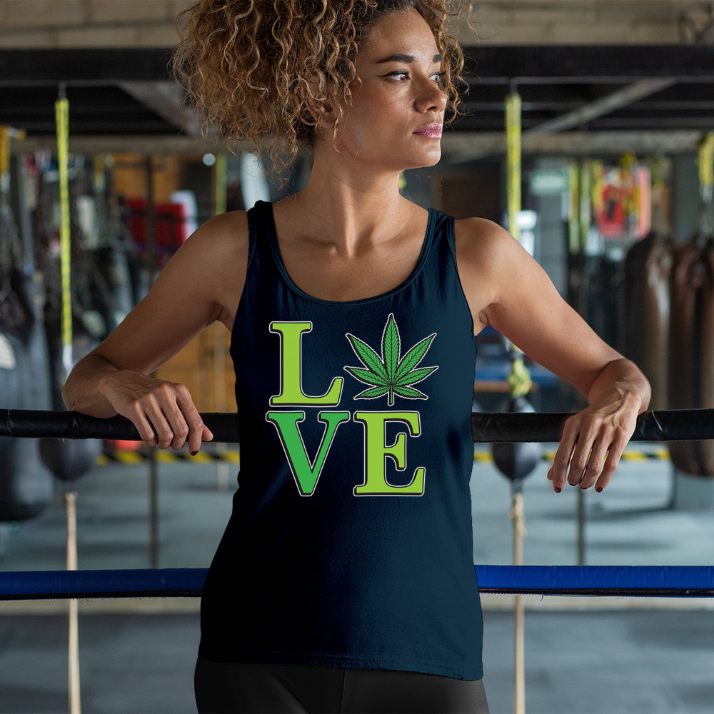 LOVE design with a bold weed leaf. Perfect for 420 fans, stoners, cannabis lifestyle wear, green pride, and marijuana lovers.