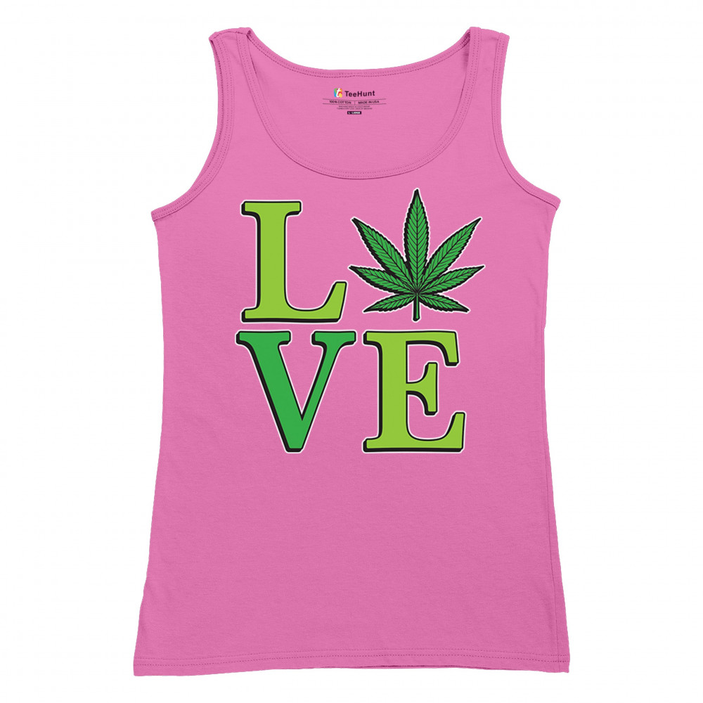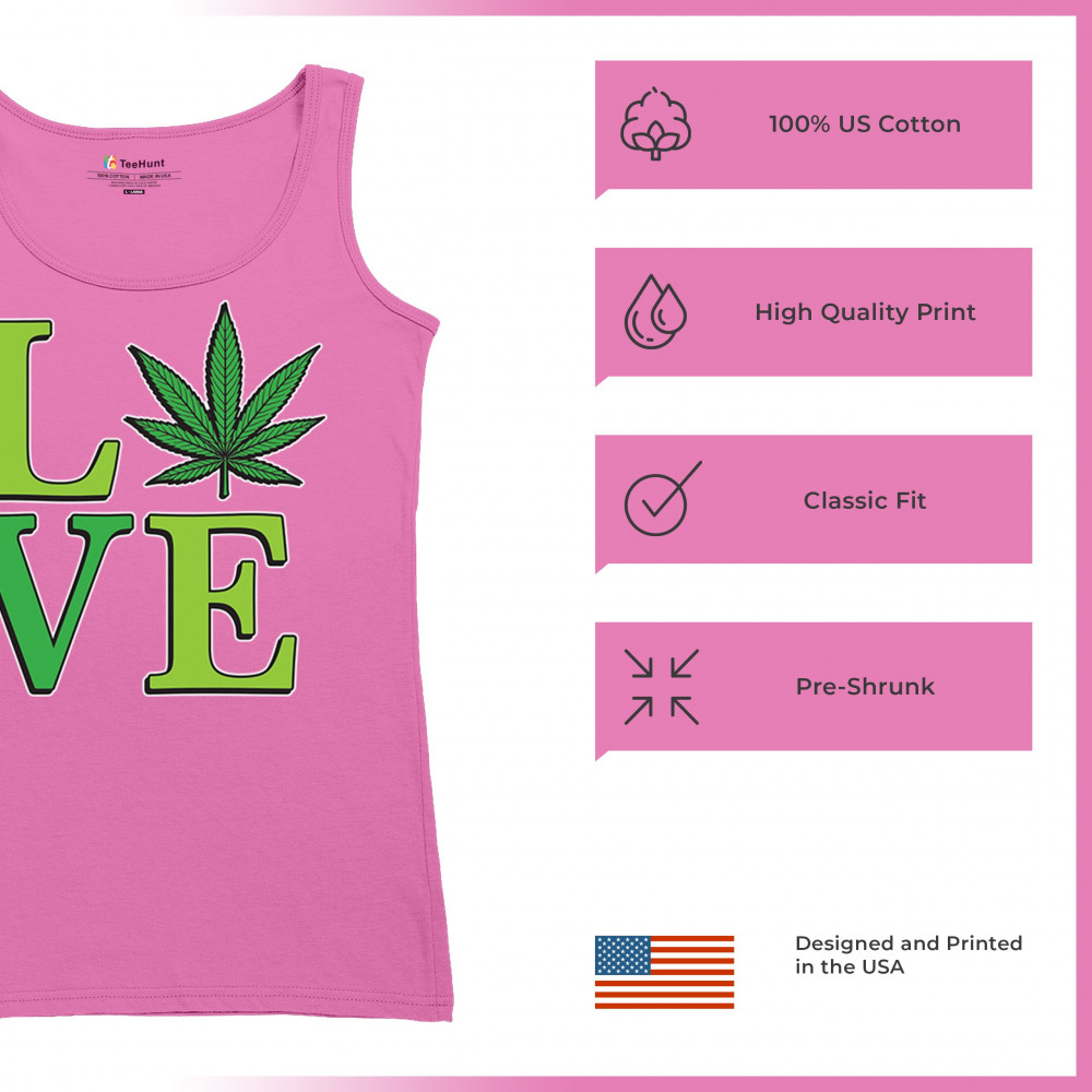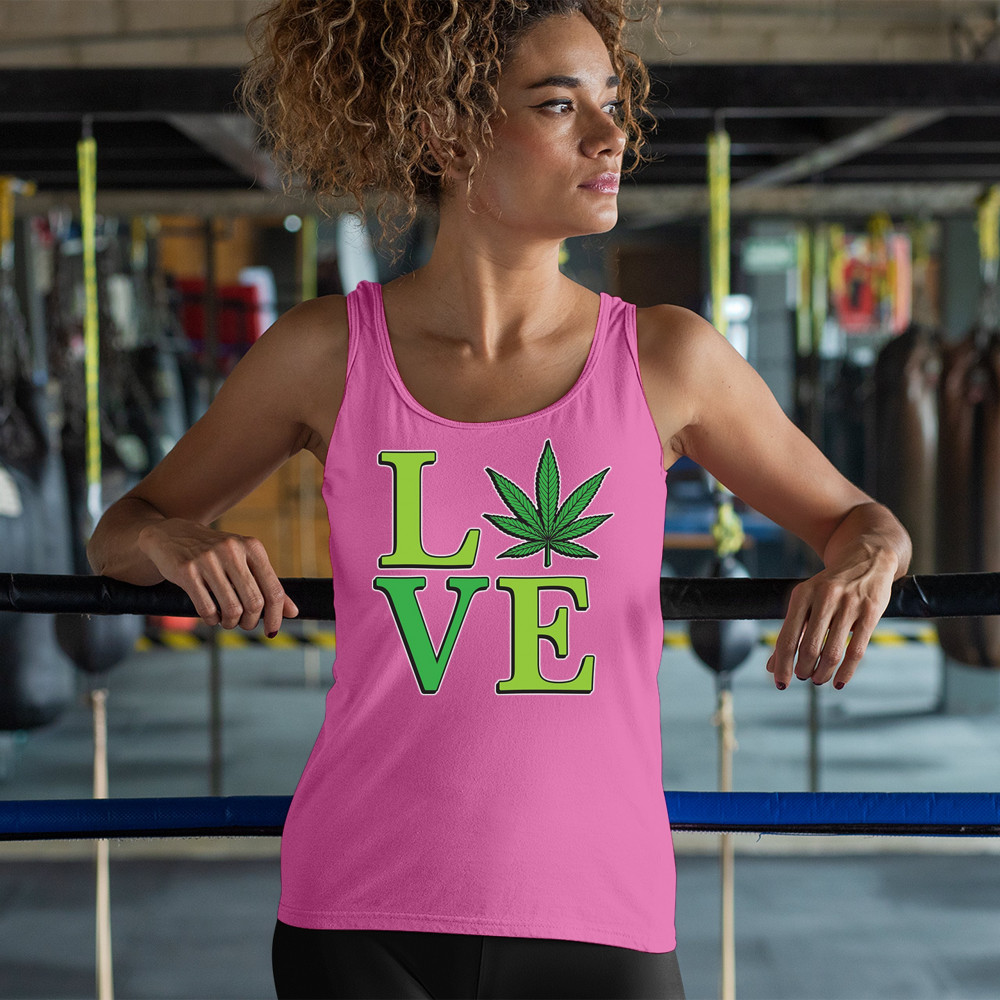 LOVE design with a bold weed leaf. Perfect for 420 fans, stoners, cannabis lifestyle wear, green pride, and marijuana lovers.