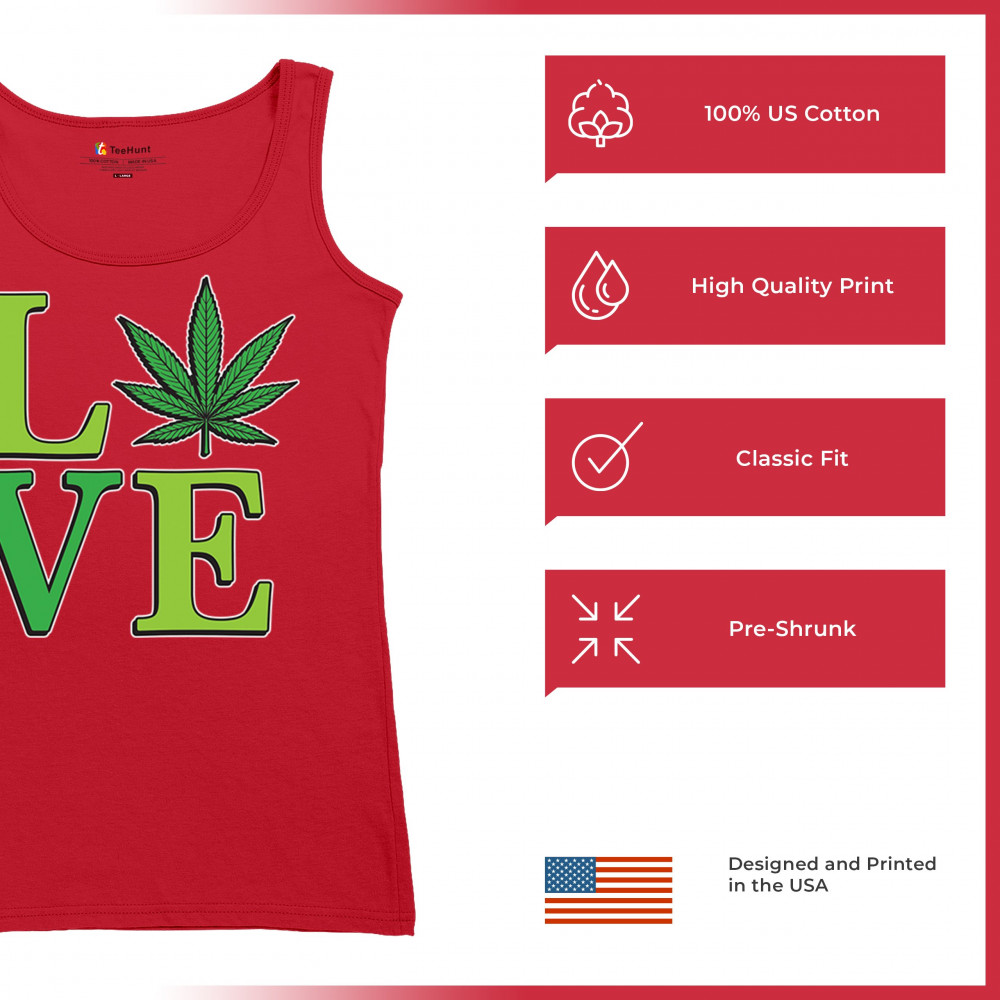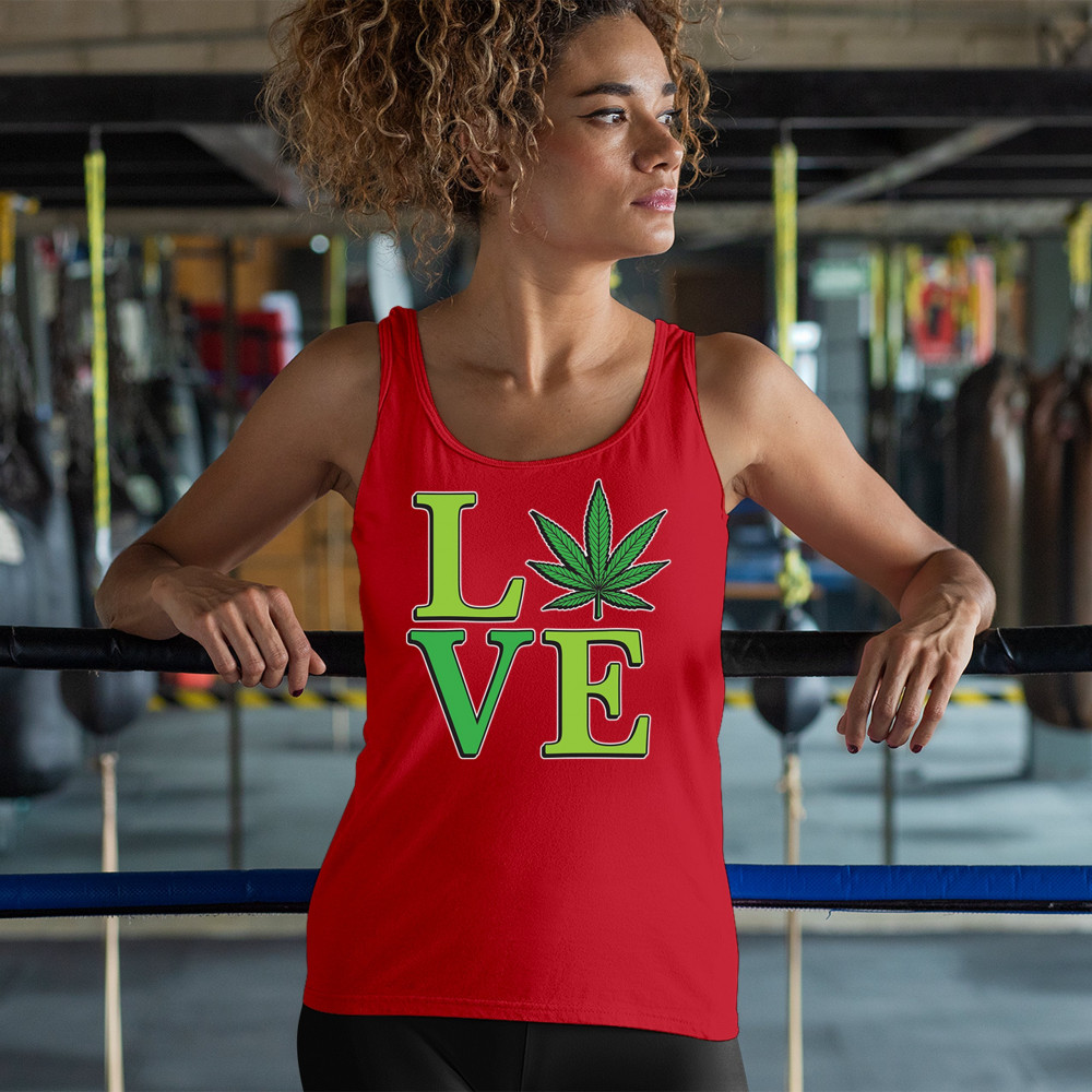 LOVE design with a bold weed leaf. Perfect for 420 fans, stoners, cannabis lifestyle wear, green pride, and marijuana lovers.