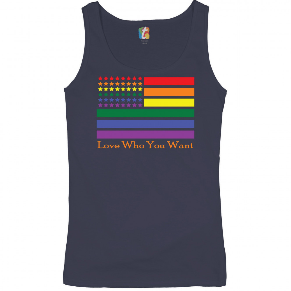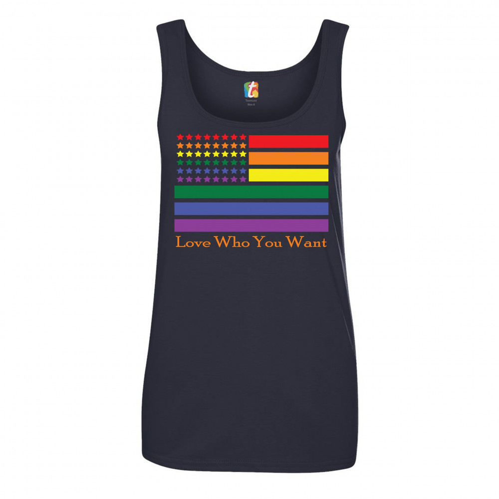 LOVE WHO YOU WANT women's tank top american gay pride rainbow flag lgbt navy blue