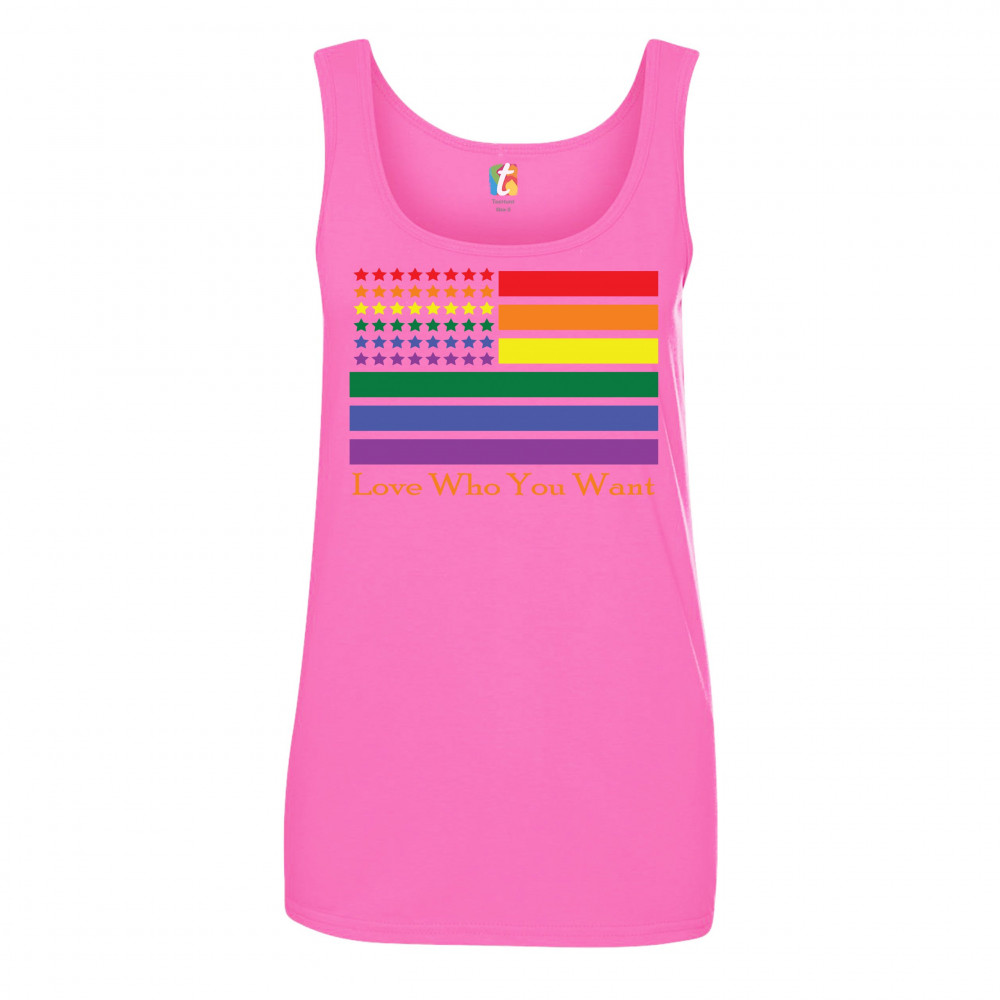 LOVE WHO YOU WANT women's tank top american gay pride rainbow flag lgbt pink
