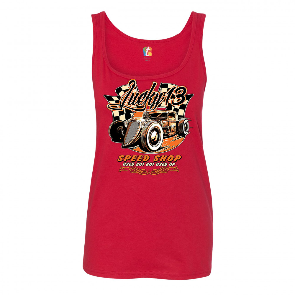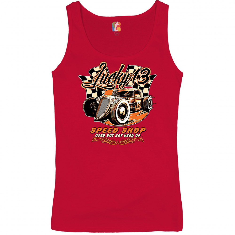 LUCKY 13 SPEED SHOP women's tank top rat rod route 66 vintage racing car red