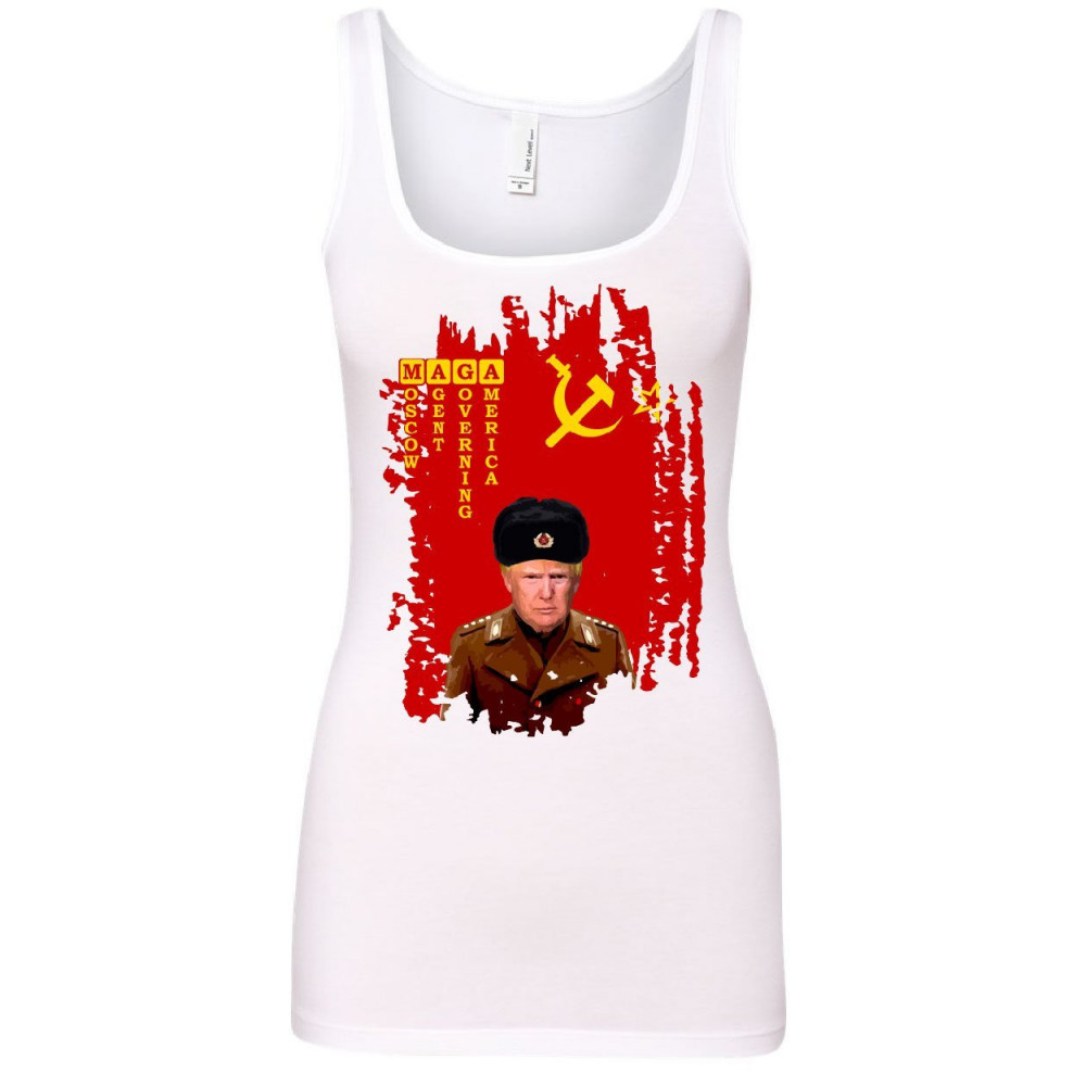 MAGA COMRADE TRUMP women's tank top funny soviet flag ussr russian agent top white