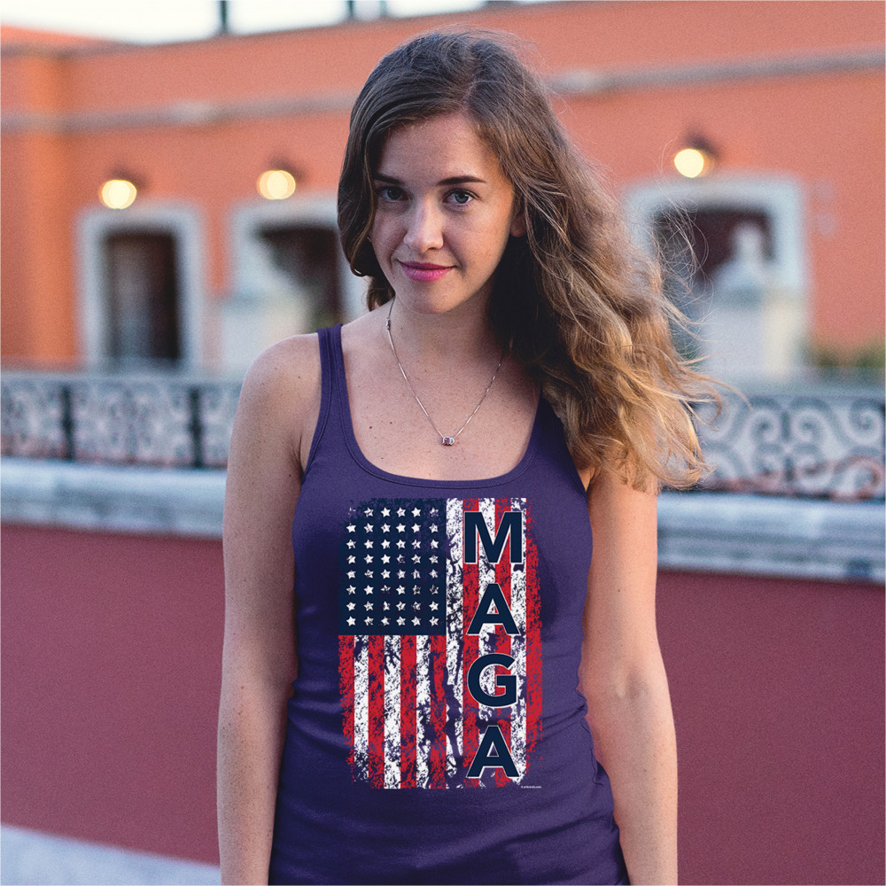 MAGA FLAG women's tank top donald trump 2020 flag keep america great navy blue