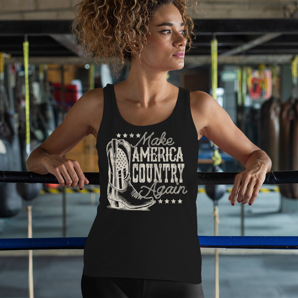 Bold patriotic country boot design with rustic flair. Perfect for rodeos, concerts, and anyone who wants to Make America Country Again.