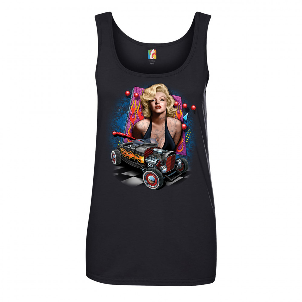 MARILYN MONROE HOT ROD women's tank top vintage route 66 drag racing black