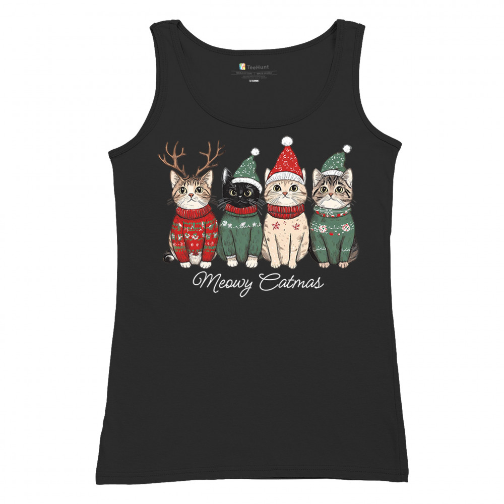 A warm Meowy Catmas design with four cozy cats in holiday sweaters. Perfect for Christmas parties, winter gifting, and anyone who loves cute seasonal pets. Optimized with: Christmas cats, cat lover gift, holiday pets, winter cats, festive kittens, seasonal graphic, cozy holiday theme, Christmas humor, cute cats, holiday design.