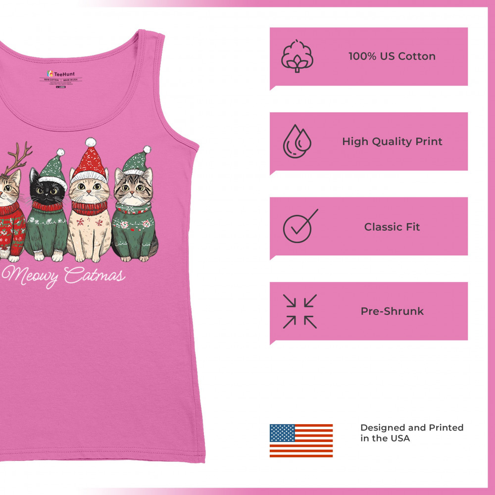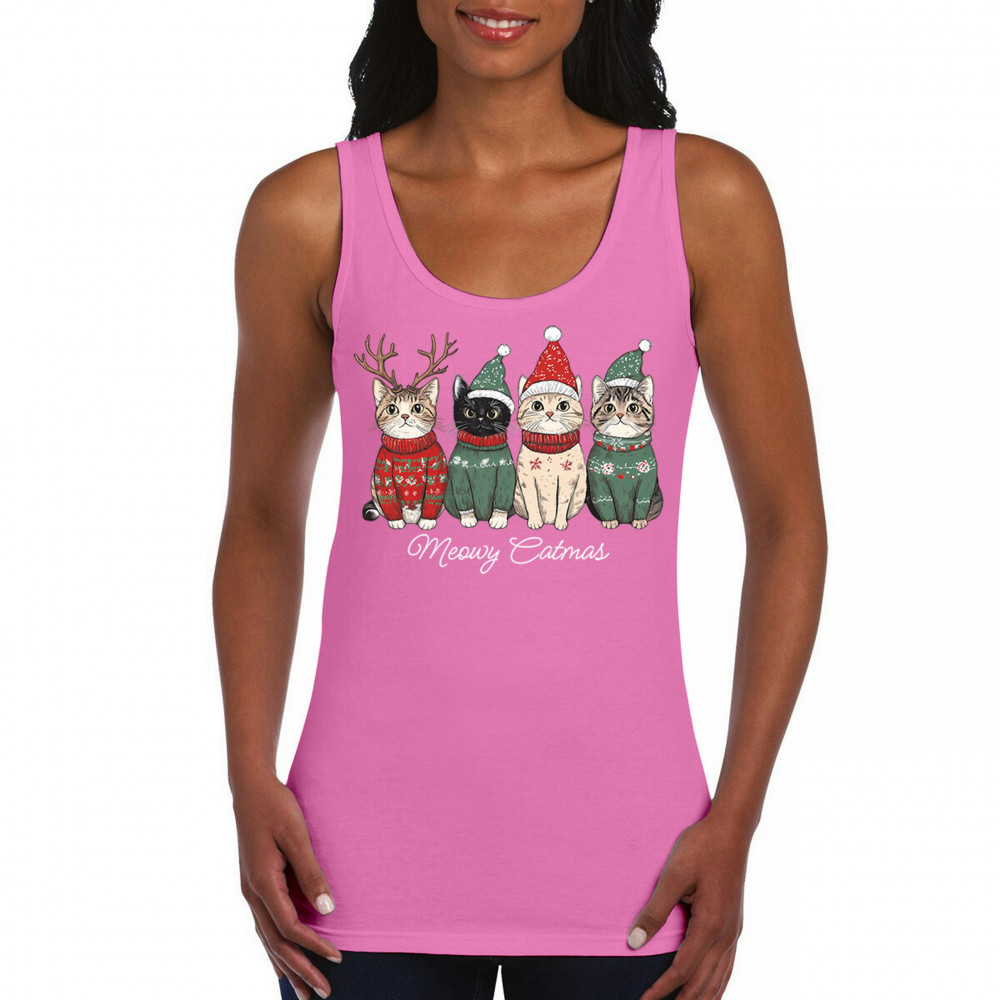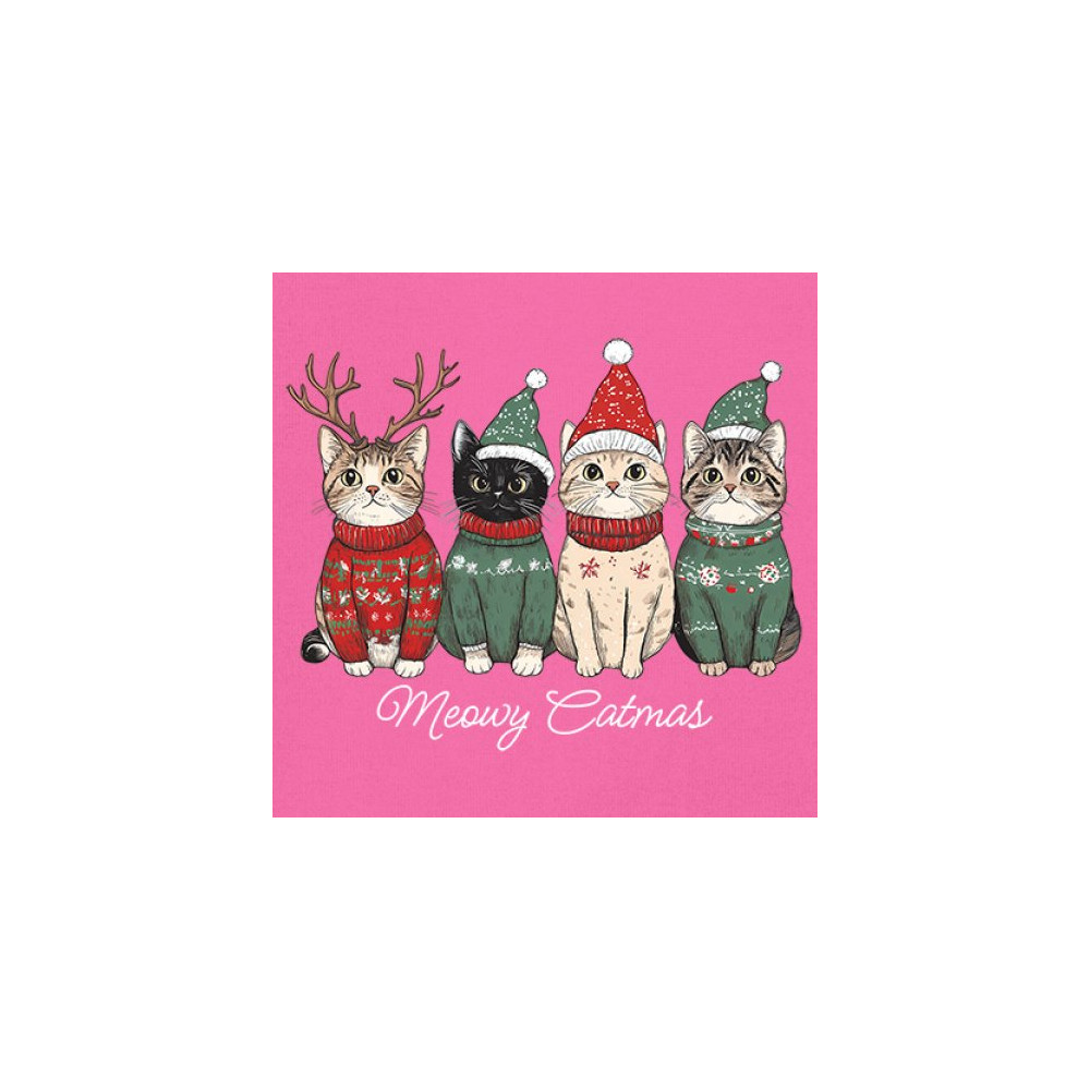 Cute Meowy Catmas design with festive kittens, perfect for cat lovers wanting a cozy holiday graphic and fun Christmas pet theme.