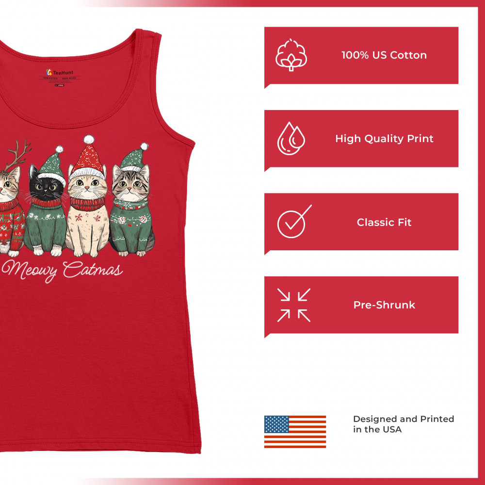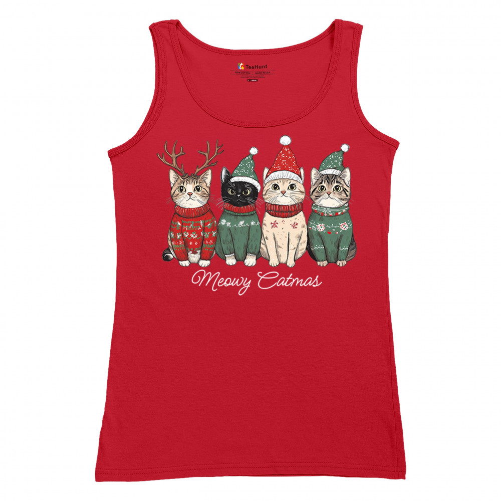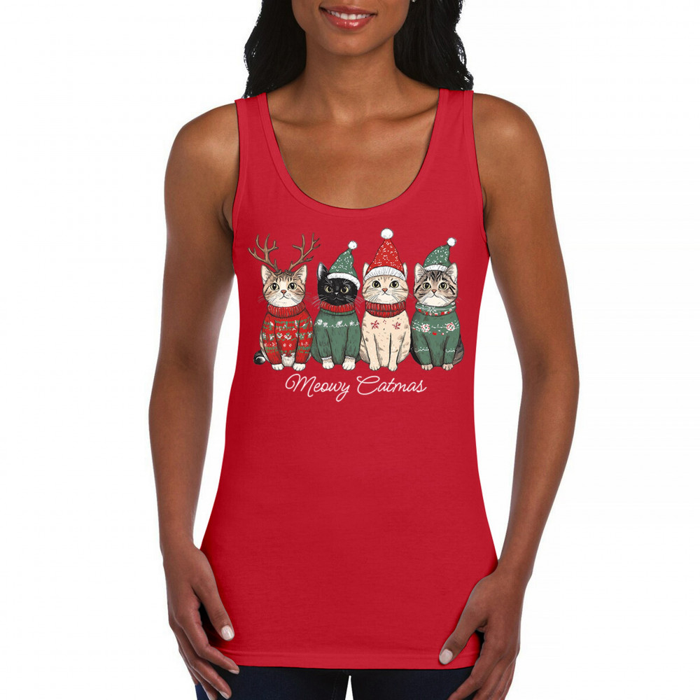 Cute Meowy Catmas design with festive kittens, perfect for cat lovers wanting a cozy holiday graphic and fun Christmas pet theme.