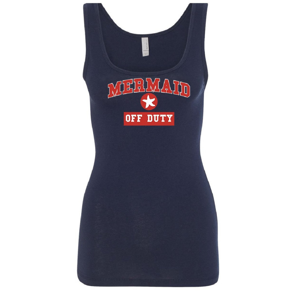 MERMAID OFF DUTY women's tank top funny cute holiday vacation ocean beach top navy blue