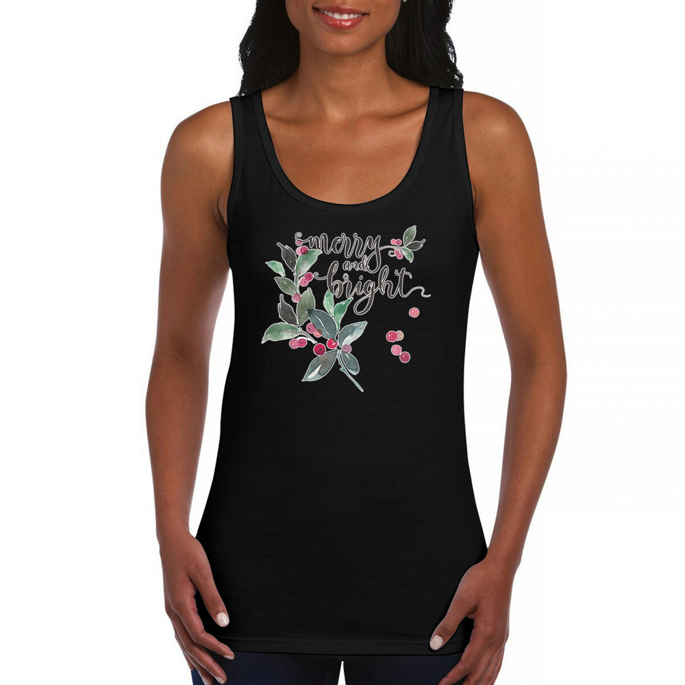MERRY AND BRIGHT CUTE CHRISTMAS women's tank top jolly santa clause xmas black